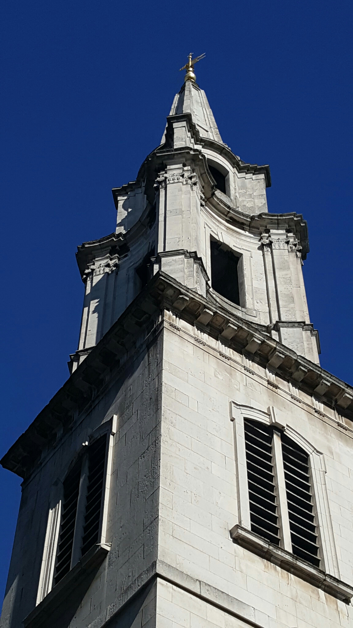 I don’t often have a chance to explore the City Churches, but was passing St. Vedast, Foster Lane en route to buy a sandwich. It was originally built by Wren in the 1670s, with payments amounting to £1,853 15s 6d between July 1670 and October 1673. The steeple was added during the 1690s, designed by Wren, but a revised draft by Edward Wilcox, a carpenter, was subsequently approved by the parish. Bombed in the war, it was rebuilt by Stephen Dykes-Bower, with John Betjeman listed as a church warden:-