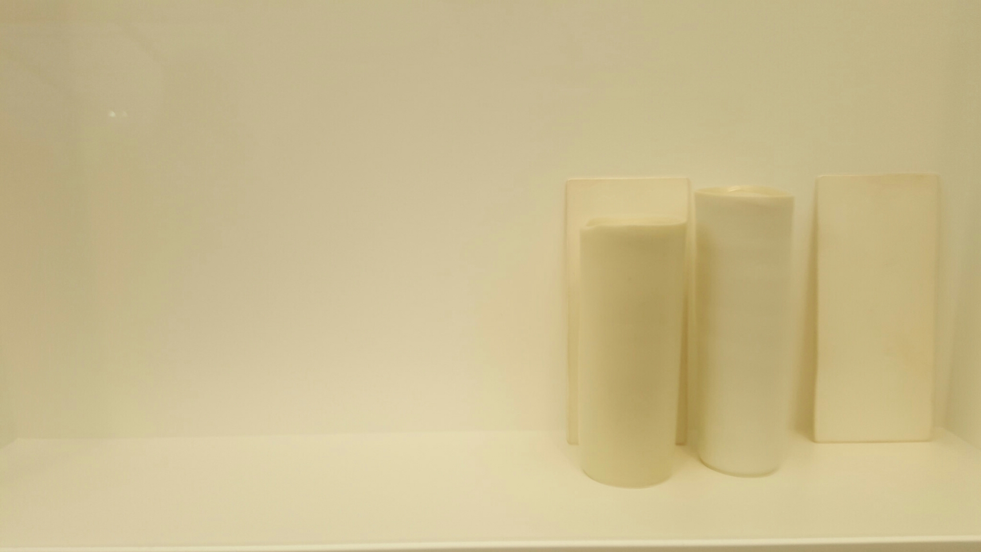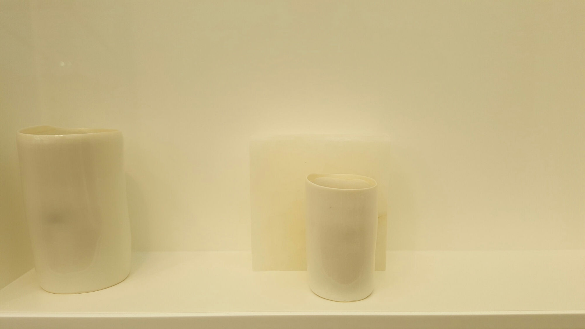 I wasn’t going to do a post from Frieze London having exhausted my blogging tendencies in going through Frieze Masters, but was struck by the recent work by Edmund de Waal which has an exhibition to itself at Gagosian. Since I’m lecturing about him (and others) on Friday in north Norfolk, I was pleased to see the whiteness and extreme mimimalism return, as well as the austerity of the spacing (they are actually all white and it’s only the camera which makes them yellow):-