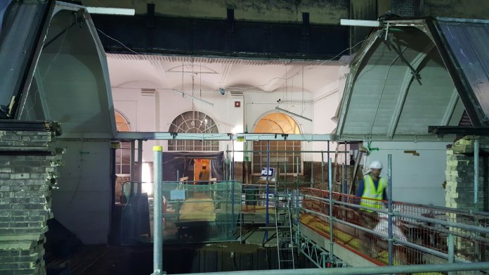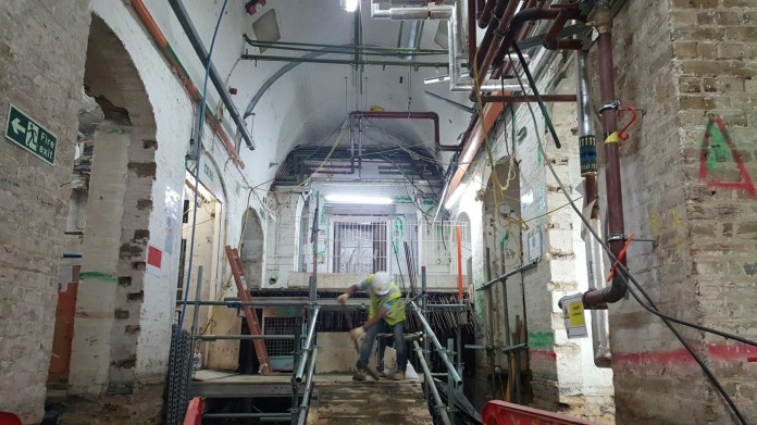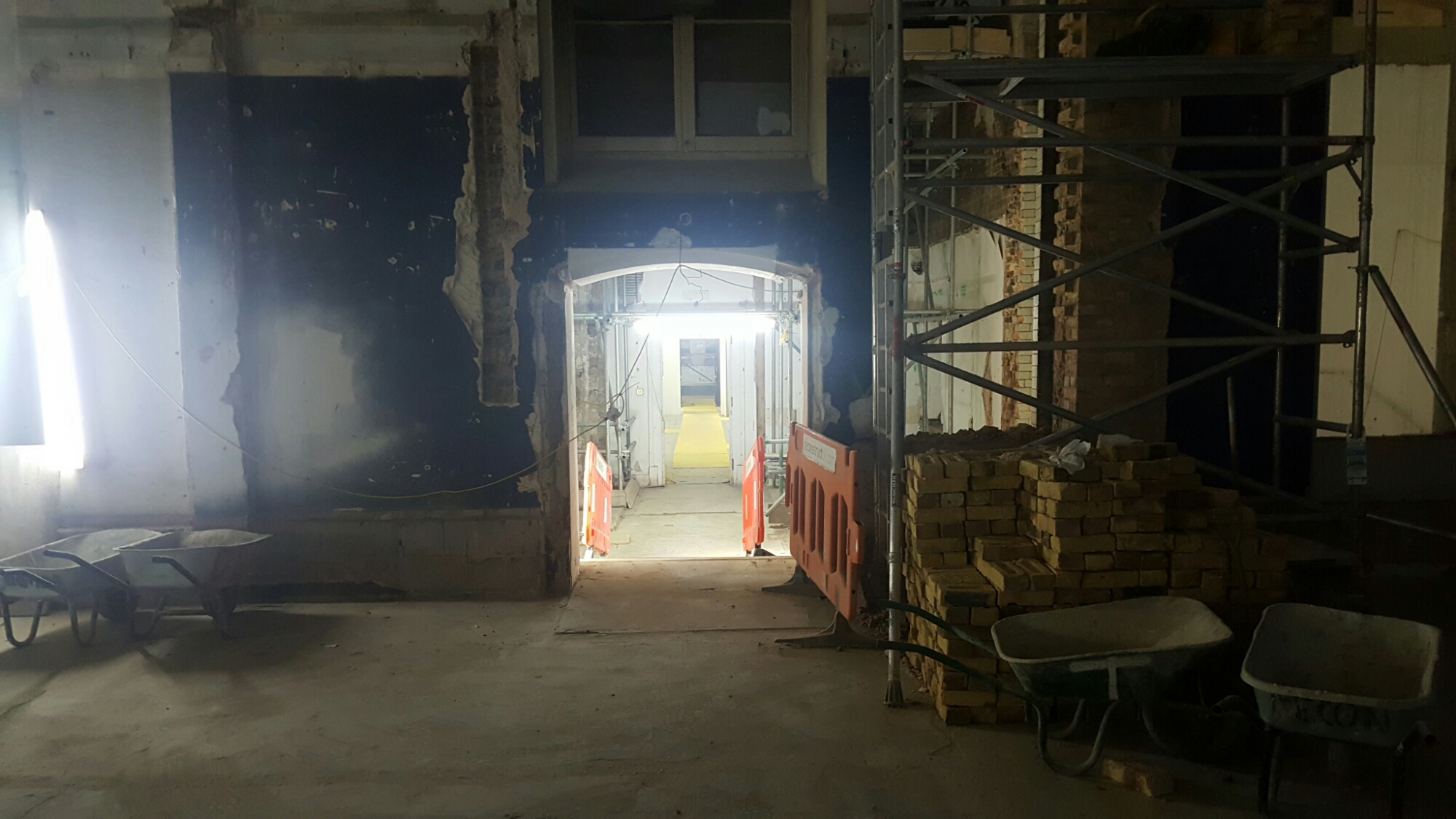 Where the bridge will be, looking through to the undercroft of Burlington House:-