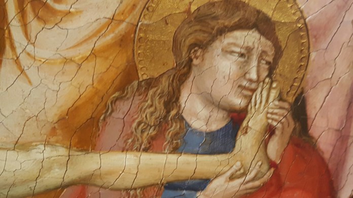 Details of The Lamentation over the Dead Christ by the Master of the Fogg Pietà:-