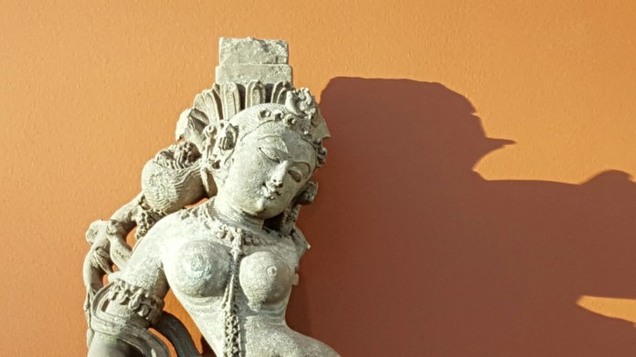 And a Female Tree Deity (c.973), shown in a glass gallery nearly outside:-