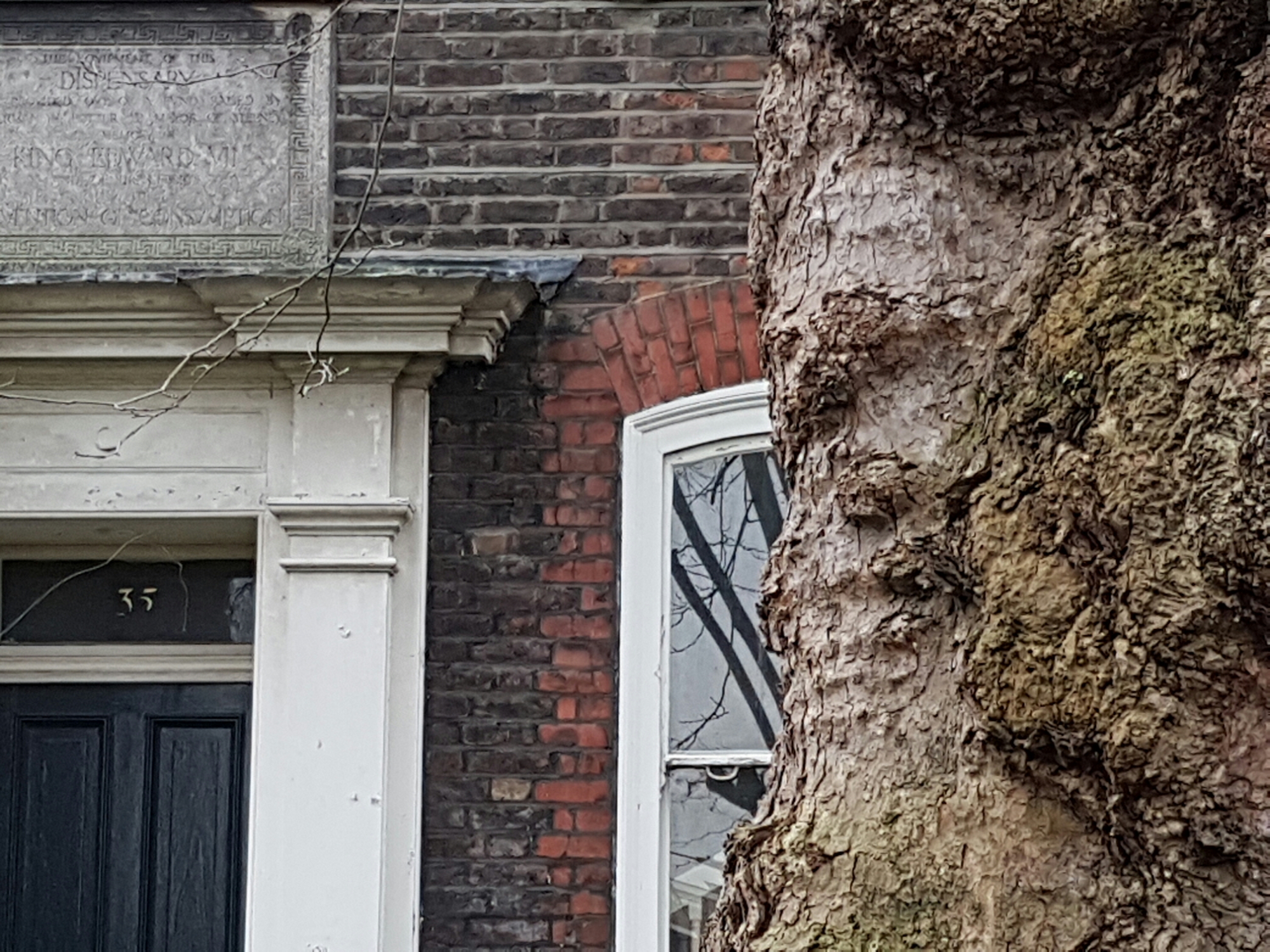 The row of houses including 35, Stepney Green was built by James Mayfield, a bricklayer from Ratcliff, some time round 1730. 35 itself was used as the Stepney Dispensary for the Prevention of Consumption as the sign reveals above the front door:-