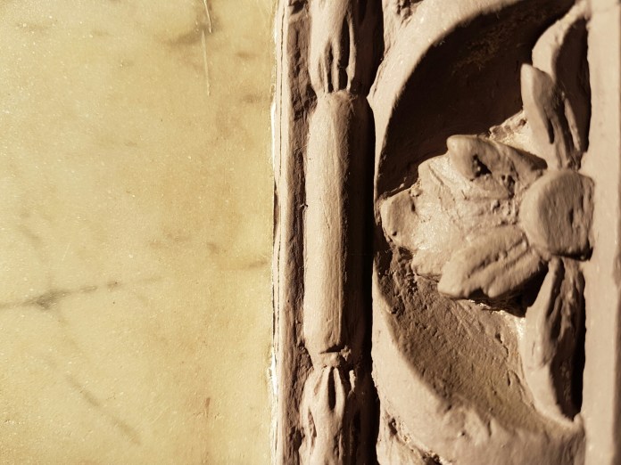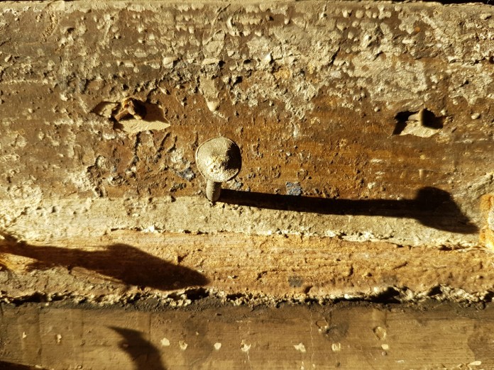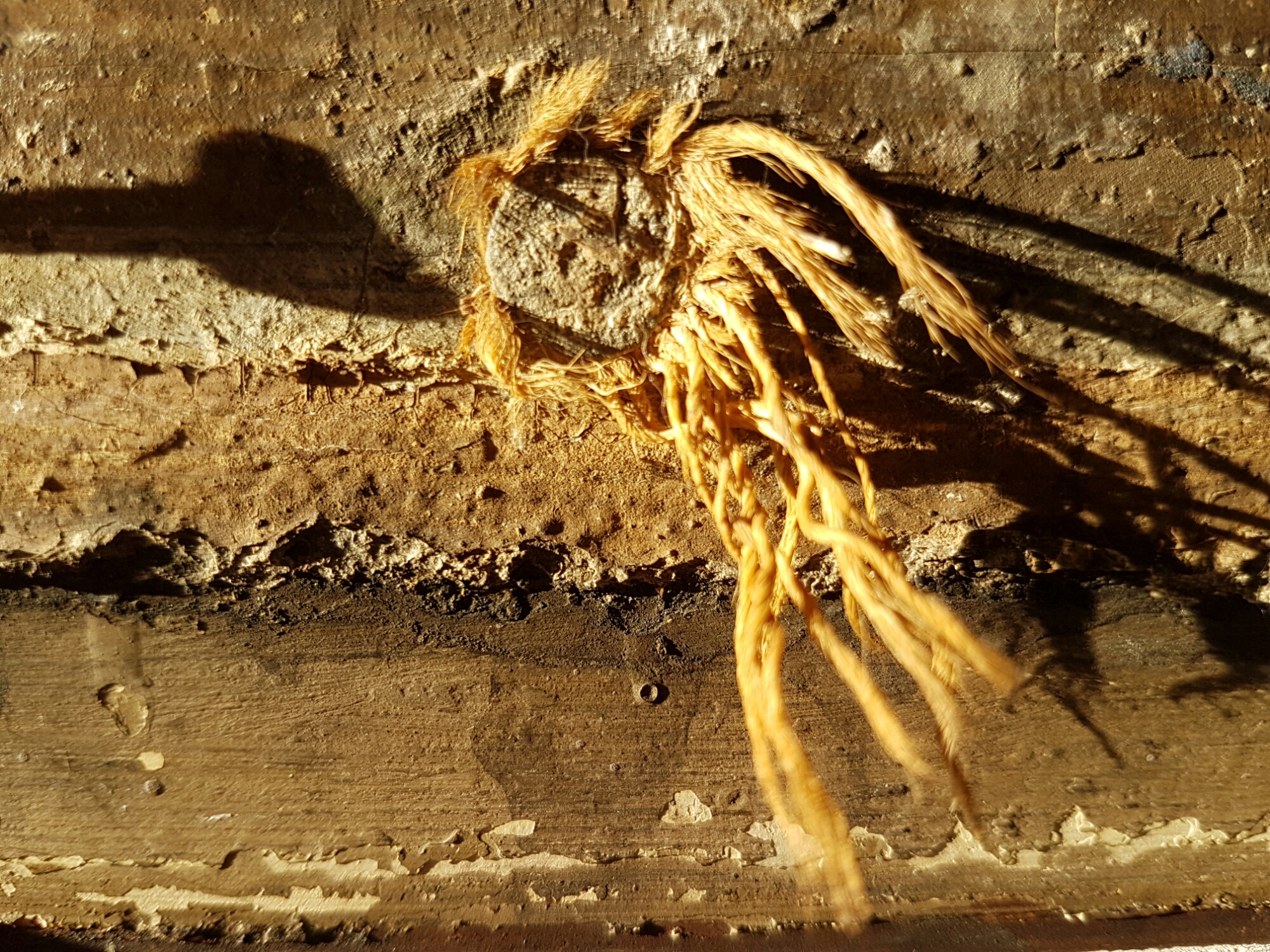 Spending more time indoors has made me more attentive to what survives of the old house which was here before we moved in – a house turned into a carriage works and then a garage.   We have always tried to work out the history of the wall surface of the dining room which is a composite of wood, fabric and maybe streaks of surviving wallpaper:-