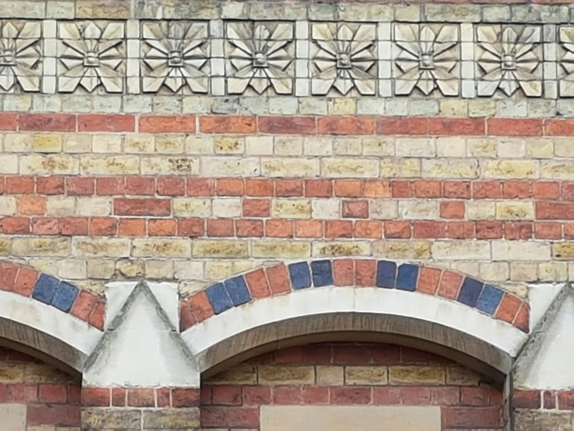 We went off to Rugby in search of the spirit of Thomas Arnold. Unfortunately, we should have checked to discover that the school term ended yesterday, so everything was very shut up, with no tours available. However, we were able to see Butterfield’s New Schools with his characteristic muscular polychromy (Butterfield was originally hired by the head boy in 1859 to design the raquets courts):-