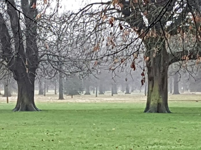 I know Hyde Park much better than I do Kensington Gardens, so took the opportunity of the closure of Lancaster Gate underground station to explore the area round Queensway, including Kensington Gardens, damp, grey and atmospheric on a wet Saturday morning, and including a curious mix of its original formal geometry, as originally laid out by George London and Henry Wise of the Brompton Nurseries, enlarged by Henry Wise for Queen Anne, and then adapted by Charles Bridgeman for Queen Caroline between 1727 and 1731, with grand avenues leading to Kensington Palace, dogs and big rotting trees:-