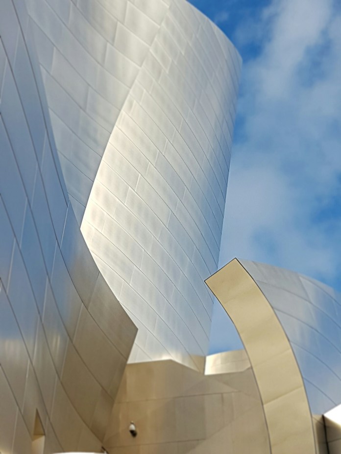 I remember Frank Gehry giving a speech in the Banqueting Hall – I thought in connection with the Pritzker Prize, but he won it too long ago (it was when he won the RIBA gold medal in 2000) – in which he demonstrated the extraordinary fluency and fertility of his invention, the range of the projects he was undertaking, and the ways in which computer-aided design had unleashed his creative juices.    But seeing his designs on a screen is as nothing to seeing the Walt Disney Hall fresh in the early morning sun after two days of rain, a curious but effective combination of populism (bugger the modernists), swagger and a Richard Serra-like interest in pure form:-