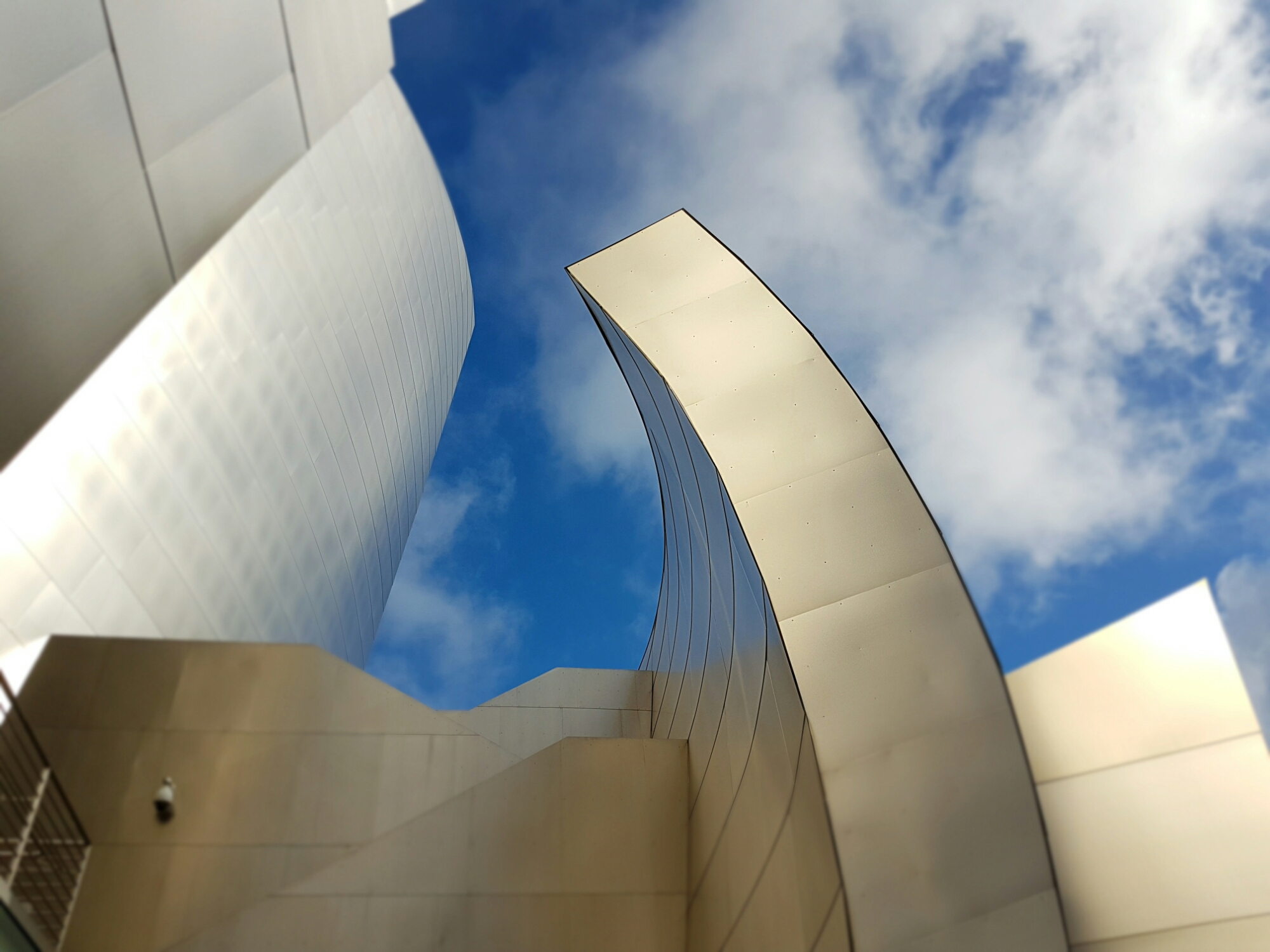 I remember Frank Gehry giving a speech in the Banqueting Hall – I thought in connection with the Pritzker Prize, but he won it too long ago (it was when he won the RIBA gold medal in 2000) – in which he demonstrated the extraordinary fluency and fertility of his invention, the range of the projects he was undertaking, and the ways in which computer-aided design had unleashed his creative juices.    But seeing his designs on a screen is as nothing to seeing the Walt Disney Hall fresh in the early morning sun after two days of rain, a curious but effective combination of populism (bugger the modernists), swagger and a Richard Serra-like interest in pure form:-