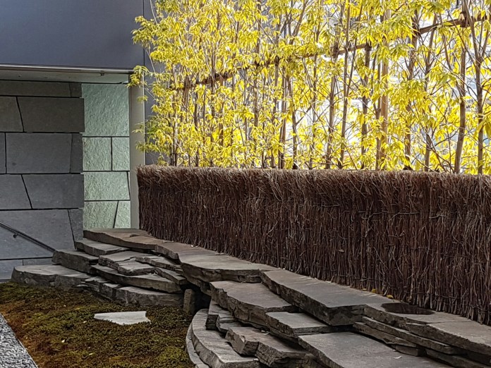 And then you sit eating tiny fragments of duck and the most delicious sushi looking out onto a terrace of rock and brush which protect one from the experience of the city:-