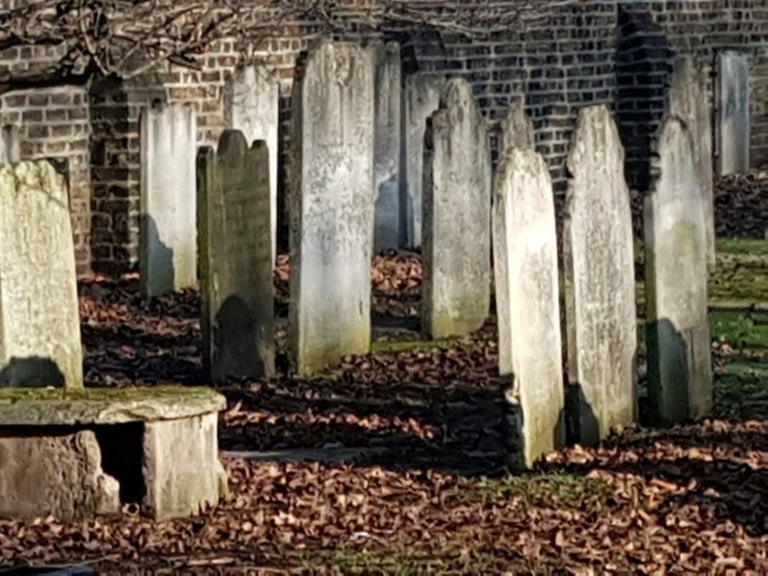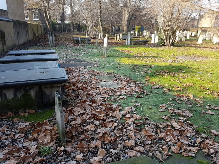 Indeed, it was, through the door, two quite substantial spaces, larger than expected, with an air of melancholy neglect. It is said to have first opened in 1696 for the burial of Ashkenazi Jews – those who came from Germany and Eastern Europe, escaping persecution. They were granted freedom of worship in England by Cromwell in 1656 and established a synagogue in Duke’s Place in about 1690 (dates differ) just south of Aldgate (the adjacent street is Jewry Street).