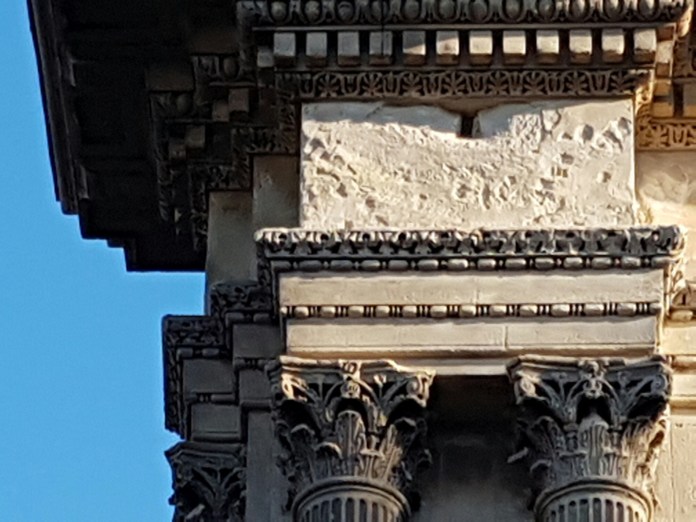 I have been prompted by comments on my blog to find out more about what is being done to Bancroft Road Public Library. The answer is that there is no information online other than the fact that a firm of architects called Kennedy O’Callaghan have been commissioned to undertake its repair which it certainly needs. I assume it has got funding to renovate it following the outcry over its proposed sale to Queen Mary in 2008. The building is significant, designed as the local Vestry Hall by an architect called James Knight in 1862, about whom I can find out no other information, and only converted into a library in 1901. I’m reposting the photograph of its very fine Corinthian columns, which look as if it could be in the Roman Forum:-