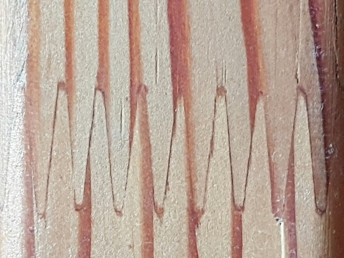 As I sit in Narita Airport waiting for the departure of my flight and reflecting on what I’ve seen, I am posting one photograph which I left out of the sequence of photographs of Sayama Chapel. It’s of a joint in the pine planks (Architectural Review calls them ash) which make up the interior of the chapel and shows the extreme quality of cratsmanship which is taken for granted in the process of construction and which both Hiroshi Nakamura and Hiroshi Sugimoto require, an attitude of admirable precision in the detailing of a building, such that Sugimoto was annoyed by the way the tables had been cleaned. It’s part of what makes the character of the buildings as a whole:-