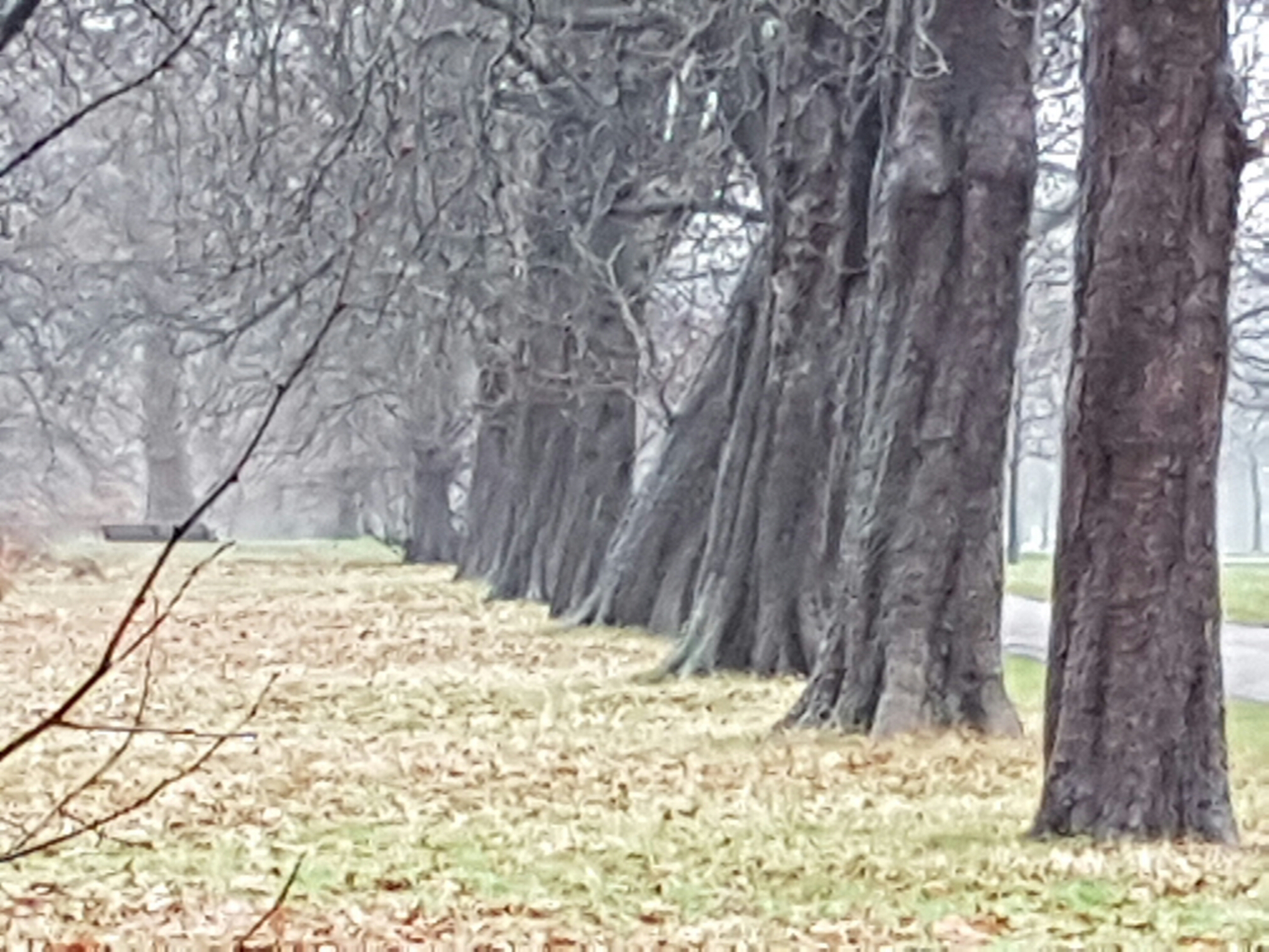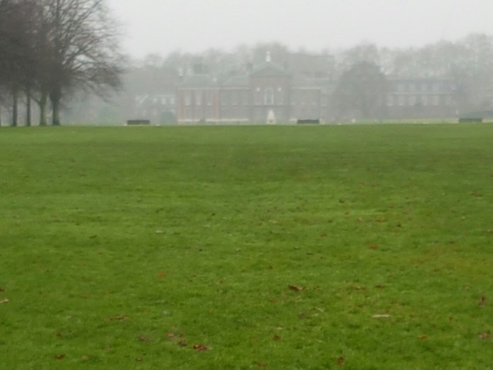 I know Hyde Park much better than I do Kensington Gardens, so took the opportunity of the closure of Lancaster Gate underground station to explore the area round Queensway, including Kensington Gardens, damp, grey and atmospheric on a wet Saturday morning, and including a curious mix of its original formal geometry, as originally laid out by George London and Henry Wise of the Brompton Nurseries, enlarged by Henry Wise for Queen Anne, and then adapted by Charles Bridgeman for Queen Caroline between 1727 and 1731, with grand avenues leading to Kensington Palace, dogs and big rotting trees:-