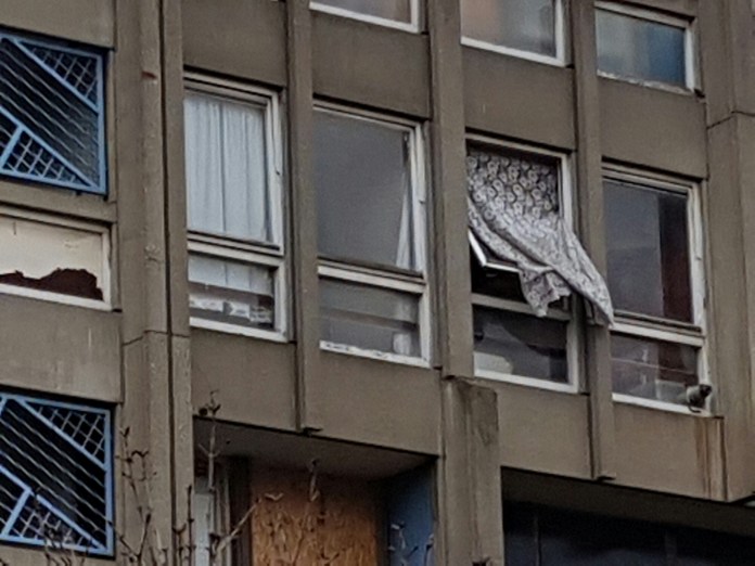 Realising that the west block of Robin Hood Gardens is soon to be demolished and prompted by negative comments on my blog last week, I thought I should go and see why it is both revered and reviled.   It’s easy to see why it’s reviled:  long concrete blocks, poorly maintained, in a bleak area of Blackwall.   Revered ?   It’s presumably partly the sheer arrogant bloody-mindedness of it, the ruthless imposition of post-war socialist ideals on the resident population, so that, more than anywhere else, it has become emblematic of an era and its erroneous utopianism, so that, like the Euston Arch, it will be remembered as a great loss, wantonly destroyed by Margaret Hodge when Minister:-