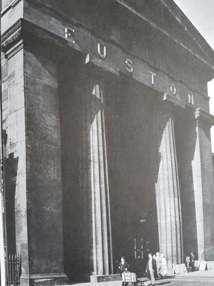 I have discovered that it is still possible to obtain copies of the book the Smithsons produced in 1968 about the Euston Arch. It’s a period piece, with an introduction by Nikolaus Pevsner in which he commends the fact that architects ‘who have designed buildings of outstanding integrity…are here denouncing the Euston Murder’. There are sketches by J.C. Bourne of the building under construction:-
