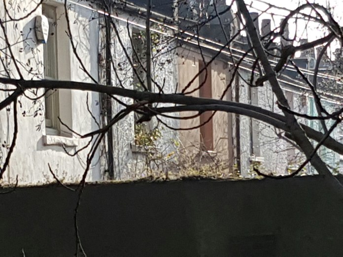 I walked past Mile End Place this morning in the sleet and remembered that I had taken photographs of it recently in sunnier weather, not least from over the wall to the north in the Jewish cemetery:-
