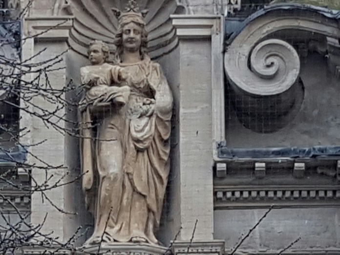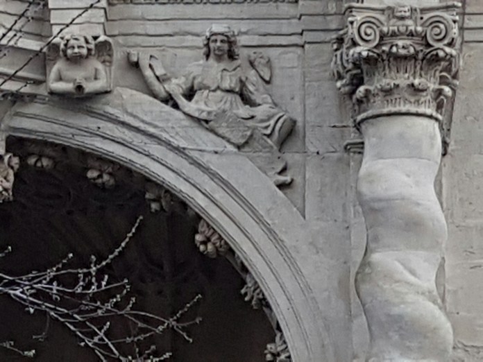 I had forgotten how extraordinarily baroque the entry portal to St. Mary the Virgin is, designed by Nicholas Stone in 1637 and paid for by Archbishop Laud’s chaplain:-