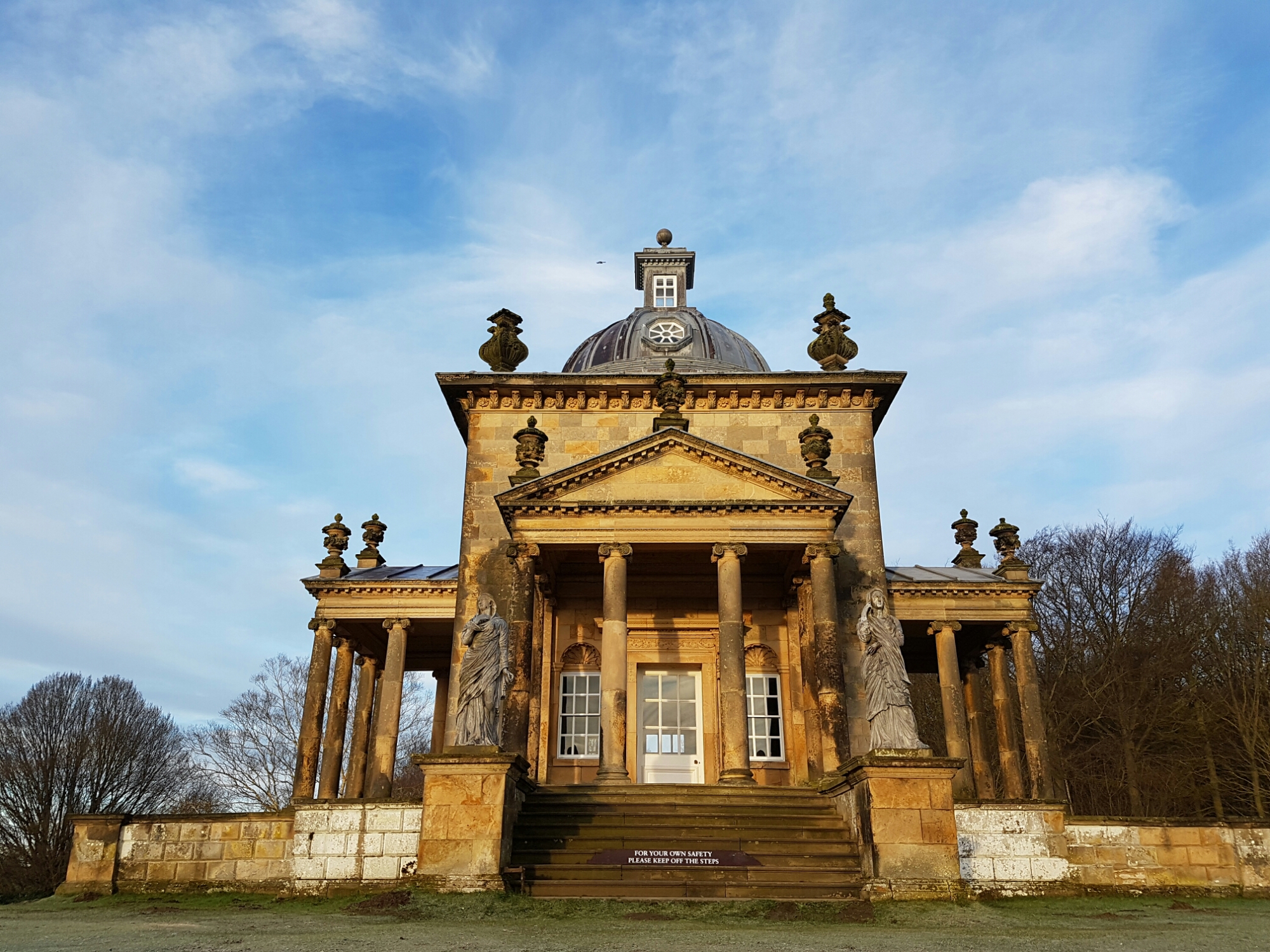 Before breakfast, I went on a brisk, early morning pilgrimage out along the terrace to the Temple of the Four Winds and across the fields to the mausoleum. I love the Temple of the Four Winds, so crisp, so controlled, Vanbrugh at the end of his life answering his critics who regarded him as incapable of understanding Palladianism:-