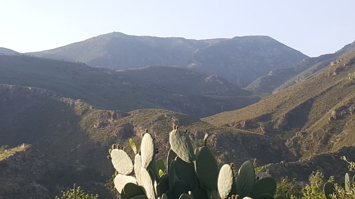 After the exertions of yesterday’s visit to Granada, today has been somnolent, with only a morning walk up the back roads to Órgiva’s weekly market, which, like many markets, turns out to be not much more than a few stalls selling fruit, vegetables and cheap clothes. But the walk enabled me to enjoy views of the mountains and overgrown olive groves:-