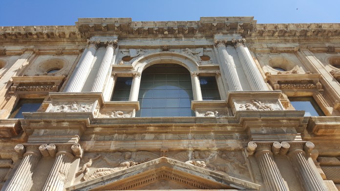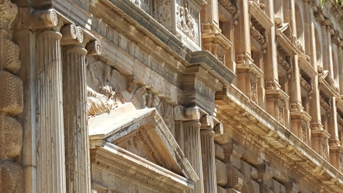 First of the major sights along the Calle Real is the Palacio de Carlos V, a statement of robust classicism following the Conquest of the Moors, designed by Pedro Machuca, a pupil of Michelangelo:-