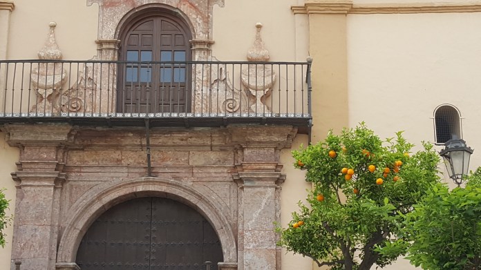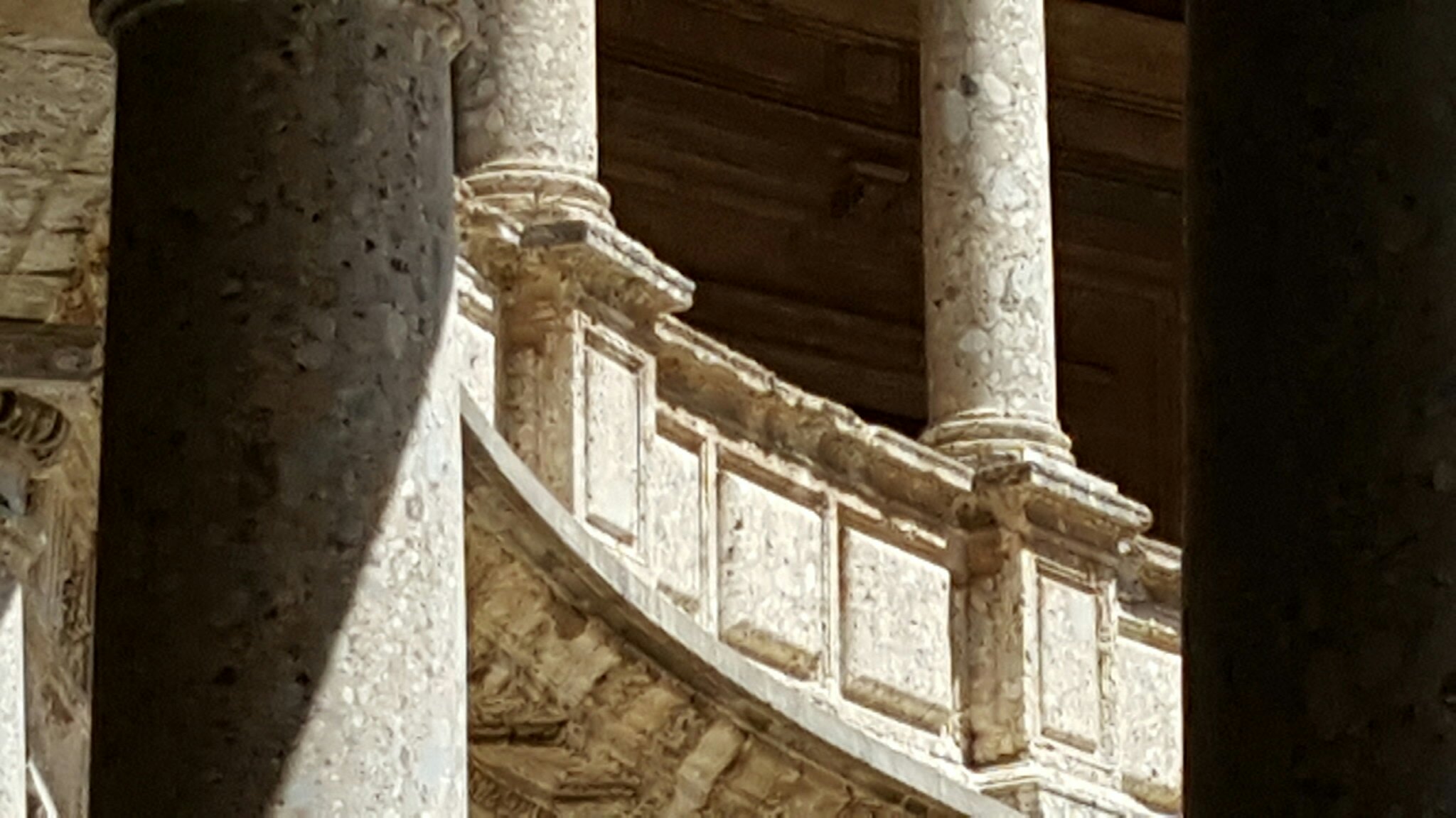 First of the major sights along the Calle Real is the Palacio de Carlos V, a statement of robust classicism following the Conquest of the Moors, designed by Pedro Machuca, a pupil of Michelangelo:-