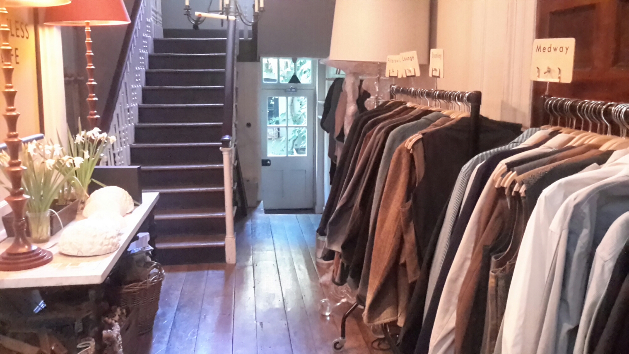 I was going to post a photograph of Old Town’s anniversary pamphlet, with its cranky agricultural graphics on a wooden background, pictures of men with beards and women who look like the Director of the Geffrye Museum, when I discovered that my Samsung 7 had imploded, overheating frantically and its camera kaput, so I am now posting the photograph on my tablet, together with photographs of Old Town’s most recent London pop-up shop:-