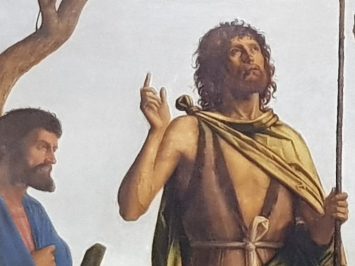 The finely photographed St.John the Baptist & Saints is by Giambattista Cima da Conegliano, in its original frame as you say. There is another beautiful Cima in S. Giovanni in Bragora in Castello – The Baptism of Christ- also we think in its original stone frame. The Baptist is remarkably similar to him as he appears in the painting in Madonna dell’ Orto. Perhaps no surprise bearing in mind the artist’s forenames?