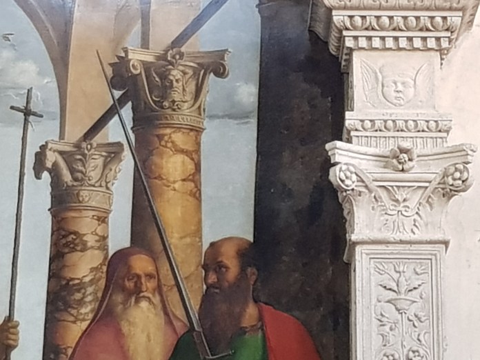We follow a very useful, tho’ perhaps ‘popularist ‘, book entitled ‘Venice: a guide to paintings in original settings ‘ by Terisio Pignatti. 1995.