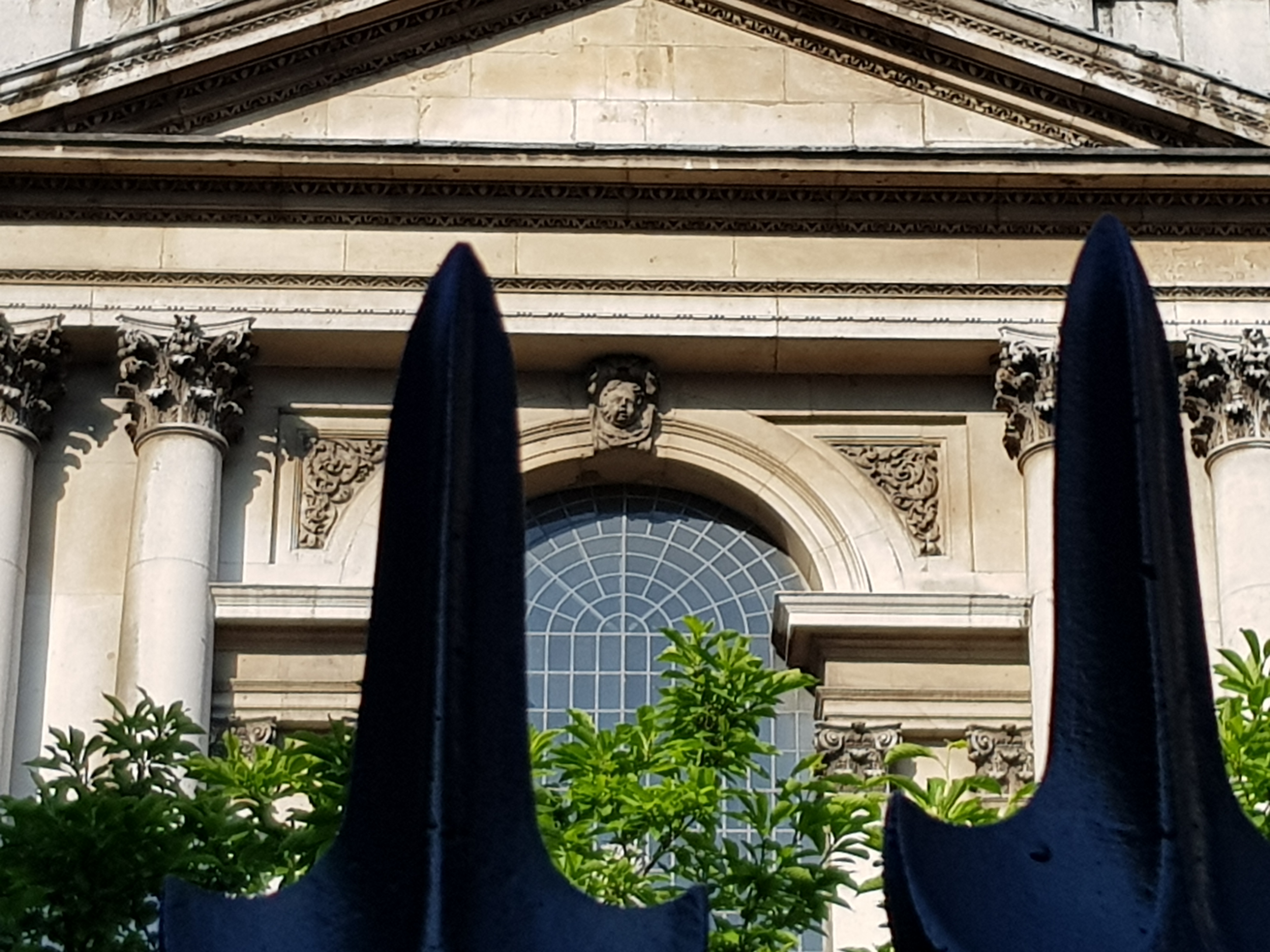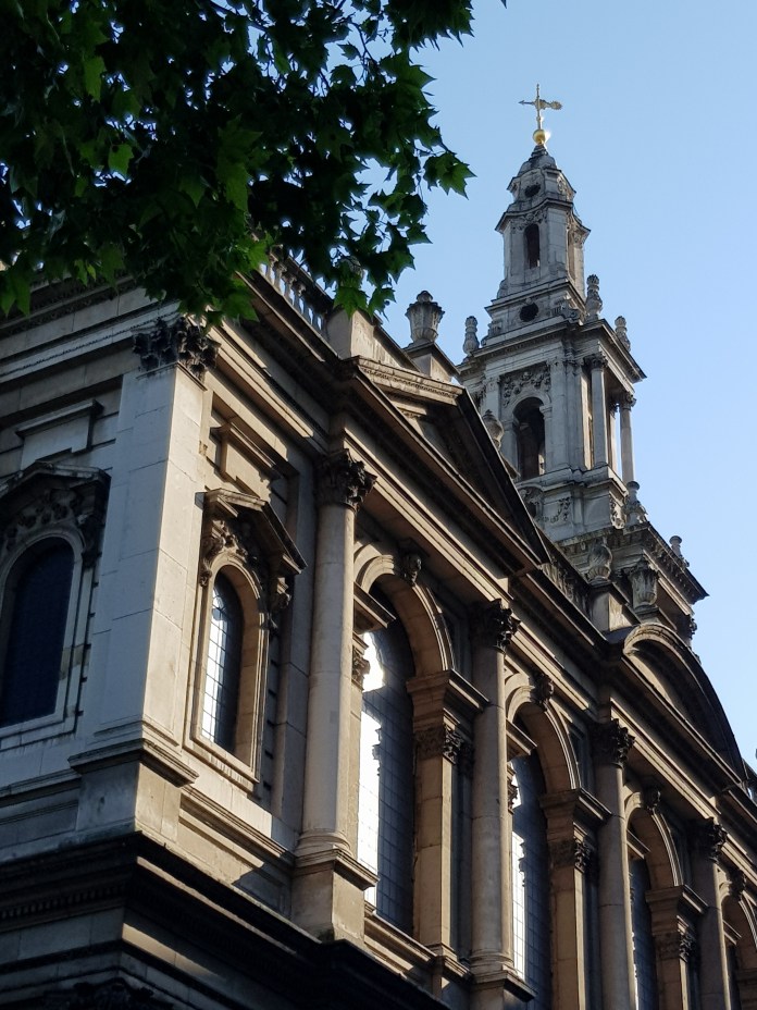 I find that walking across central London on a hot, early summer evening is like seeing it in reverse, because it is so rare to see buildings lit up from the north. None more so than St. Mary-le-Strand, normally asphyxiated by the passing traffic, but tonight visible in its full baroque glory, less muscular than the works of Hawksmoor, but at least as well informed in its use of Roman precedent, because Gibbs had actually been in Italy, first as a student at The Scots College, then as a pupil of Carlo Fontana, returning to London in November 1708. On 18 November 1713, he was appointed architect to the Commission for Fifty New Churches, replacing William Dickinson, and St. Mary-le-Strand was their first work. It was originally planned to have a campanile rather than a steeple and narrowly escaped demolition in the late nineteenth century:-
