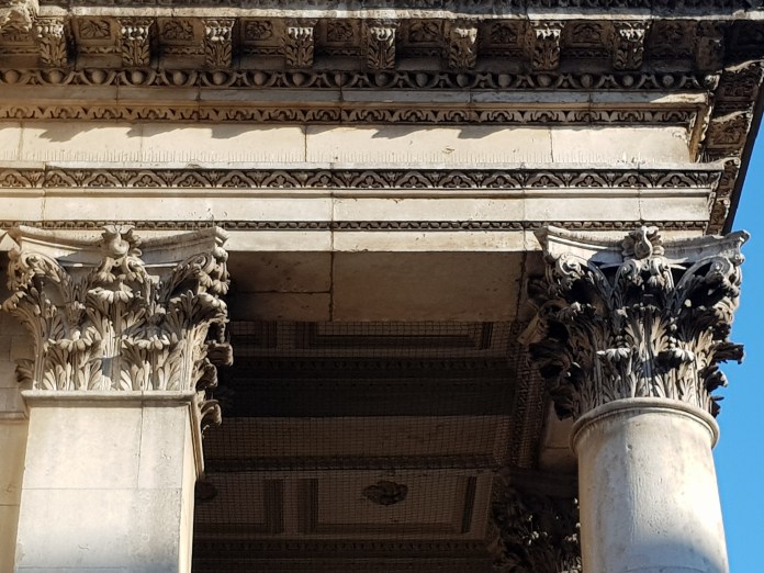 The last of the great eighteenth-century churches I passed last night was St. George’s, Hanover Square, another of the Commissioners’ Churches, designed by John James, who was himself one of the two surveyors to the Commission, with Hawksmoor, as well as joint Clerk of Works at Greenwich. He’s always regarded as a bit dull as an architect, but I don’t think that either the massing or the detailing of St. George’s is dull:-