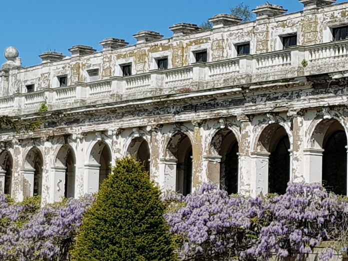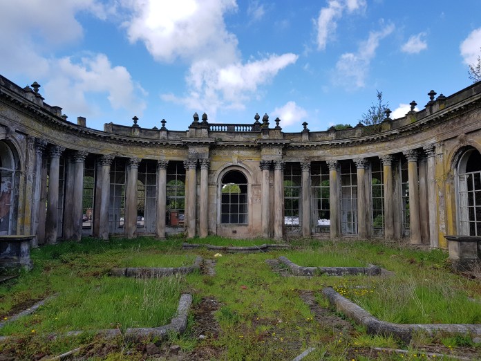 On Sunday morning, we went to see the gardens at Trentham, the ruined Barry house of the Dukes of Sutherland which was demolished in 1911 and of which now only the ruined sculpture gallery and Grand Entrance remain:-