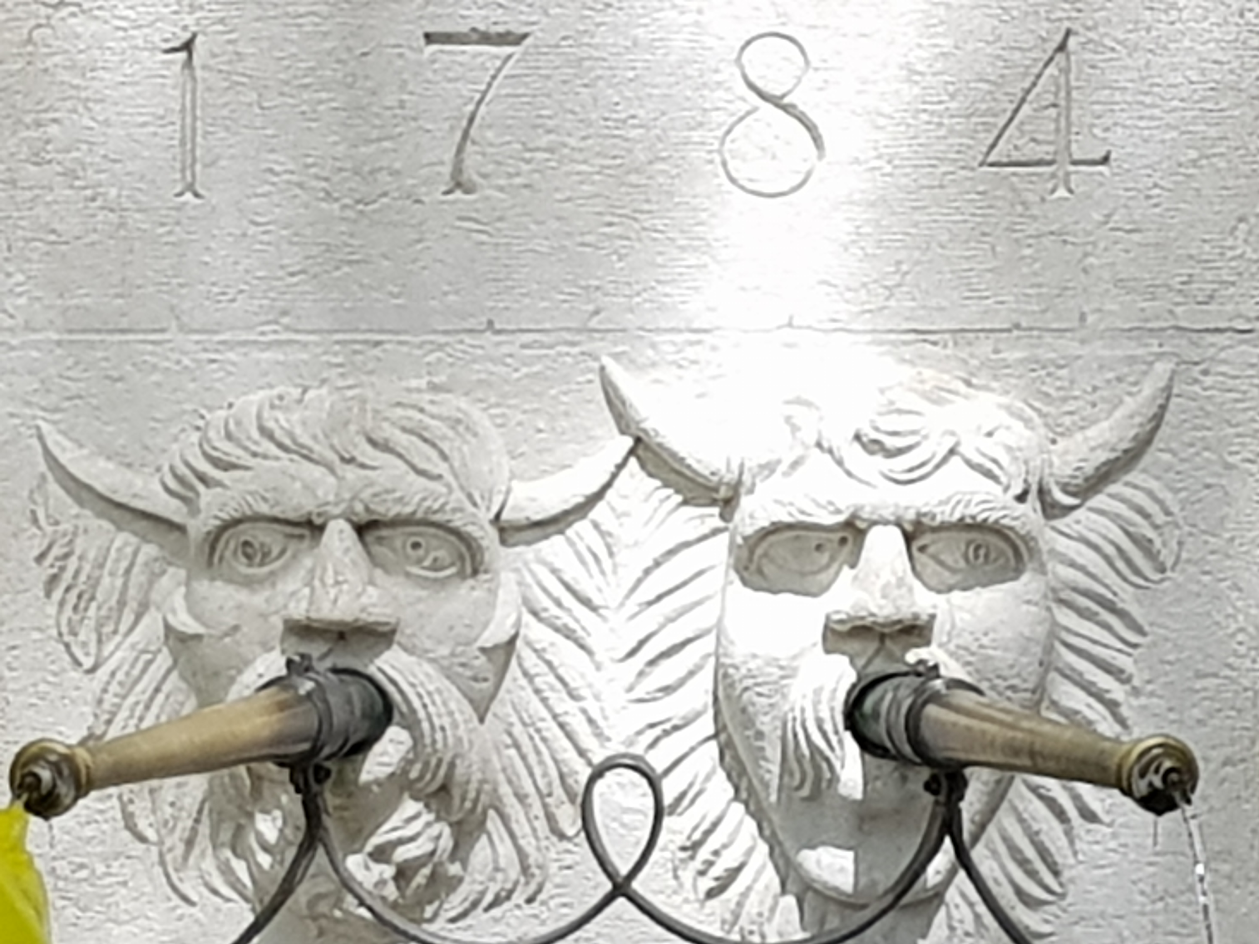 Past an eighteenth-century fountain:-