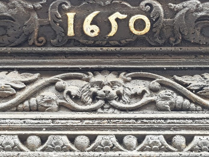 We walked down the so-called Thoroughfare, past a coffee shop with mid-seventeenth-century wood carving:-