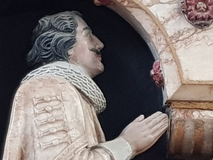 Inside, there is a fine early seventeenth-century tomb commemorating Jeffrey Pitman, kneeling above his wives and sons. These are the sons:-