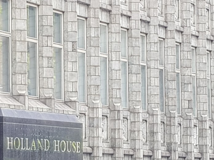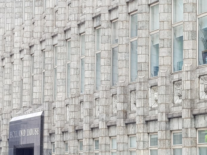 As I was walking through an unfamiliar section of the City at lunchtime today, I remembered that Peter Palumbo had said that the only building Mies van der Rohe wanted to see when he visited London was the headquarters of the Dutch shipping company, Wm. H. Müller & Co. in Bury Street, which was designed by H.P. Berlage in 1914 and built during the early years of the first world war, using Delft tiles on the exterior and with elaborate ornamental interiors designed by Berlage and Bart Van Der Leck, one of the founders of De Stijl:-