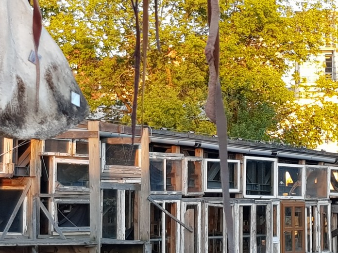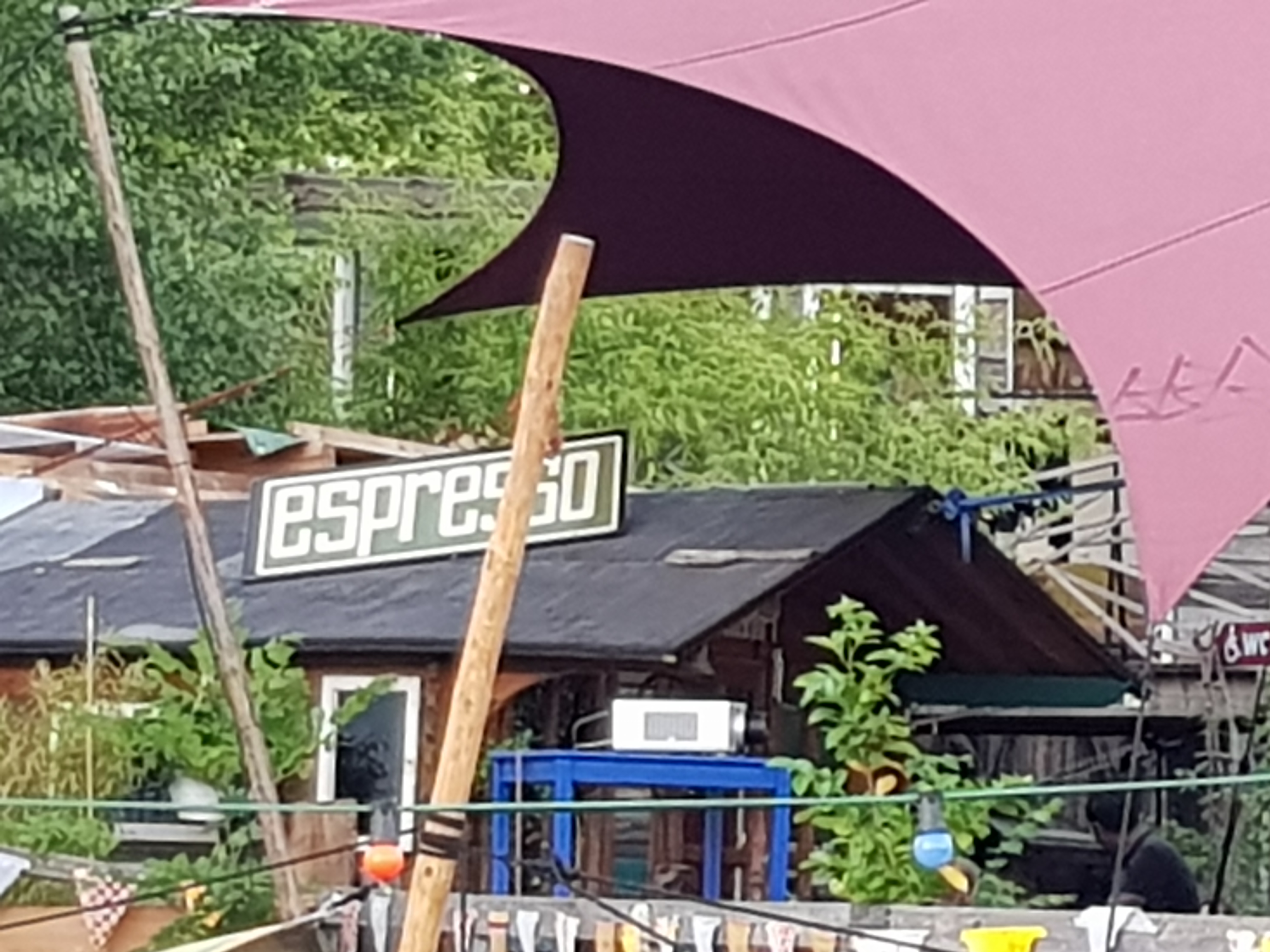 I was taken on a tour of those parts of Berlin which I would not normally see as a tourist. First, a grand, popular drinking establishment called Klunkerkranich and situated on the top of a car park in Kreuzkölln, in the old East, with a spectacular view of central Berlin:-