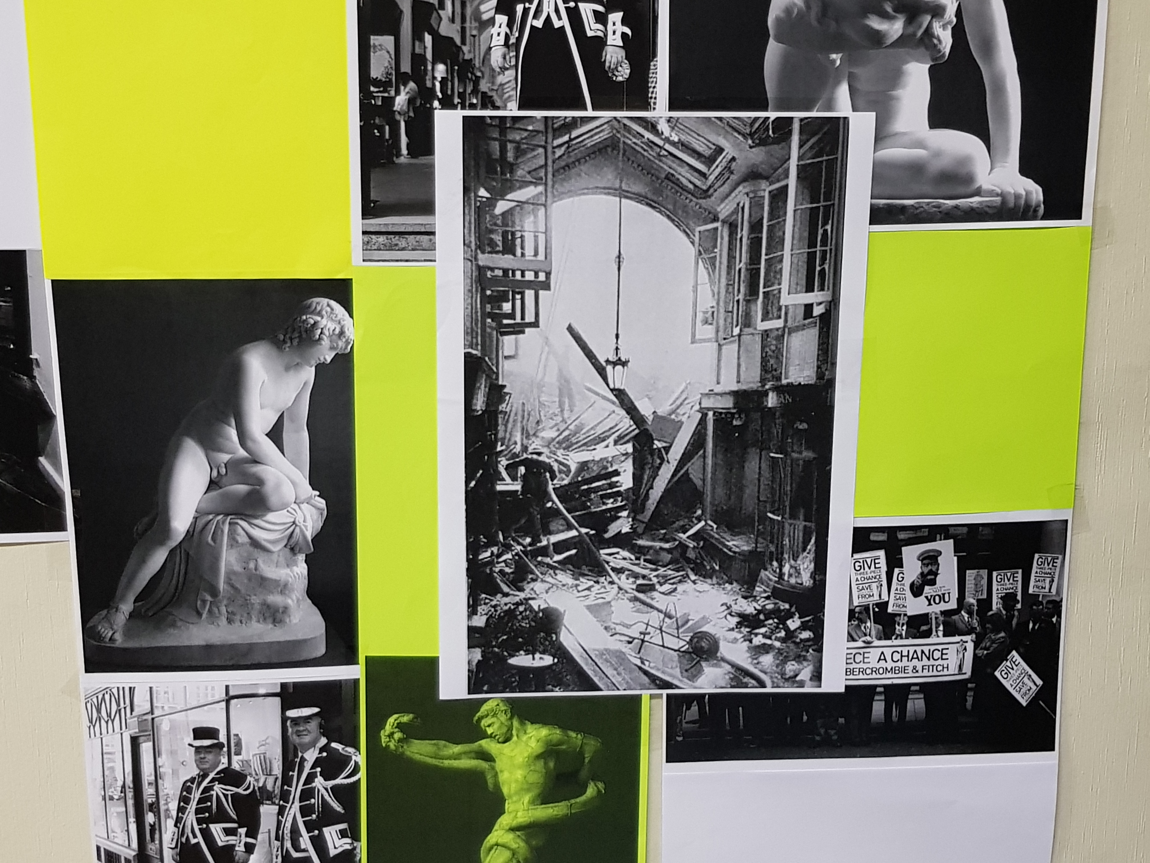 The other person I interviewed was Murray O’Grady, a recent graduate of the Royal Academy Schools, who has a pop-up exhibition in the basement of one of the shops in Burlington Arcade. He has a long-standing and well-developed interest in the history of dandyism, tracing dandyism in London back to Beau Brummell, who instructed the Prince of Wales in the niceties of how to wear a cravat and spent £800 a year on clothes until he was forced to escape his creditors by moving to France. Byron called Watier’s Club, much frequented by Brummell and his set as ‘the Dandy Club’. Carlyle described a dandy in Sartor Resartus ‘a clothes-wearing Man whose trade, office and existence consists in the wearing of Clothes’:-