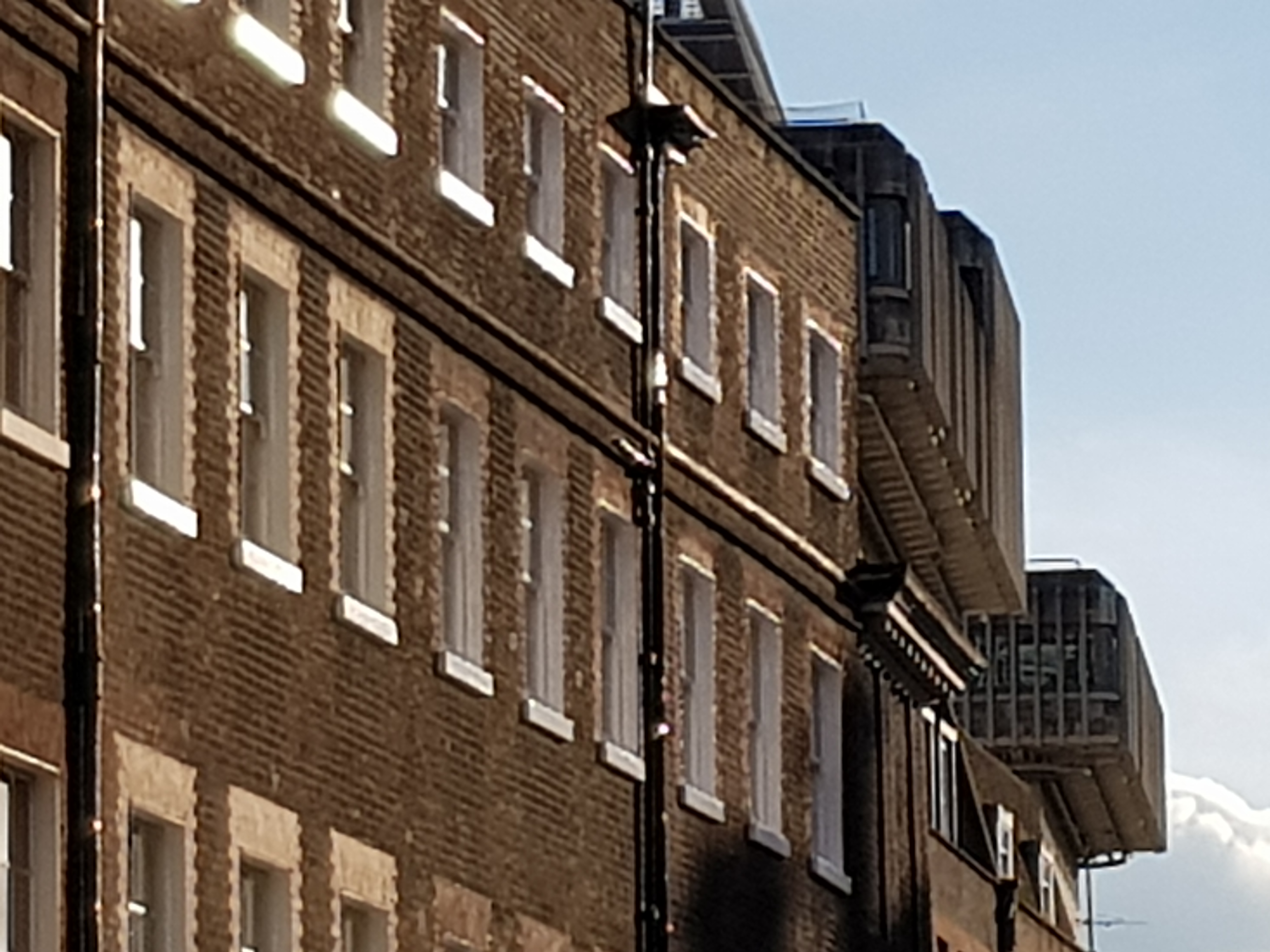 I was walking along Queen Anne’s Gate and was struck by this view of Basil Spence’s Ministry of Justice looming above the parapets of the terraced eighteenth-century houses like an escaped sputnik:-