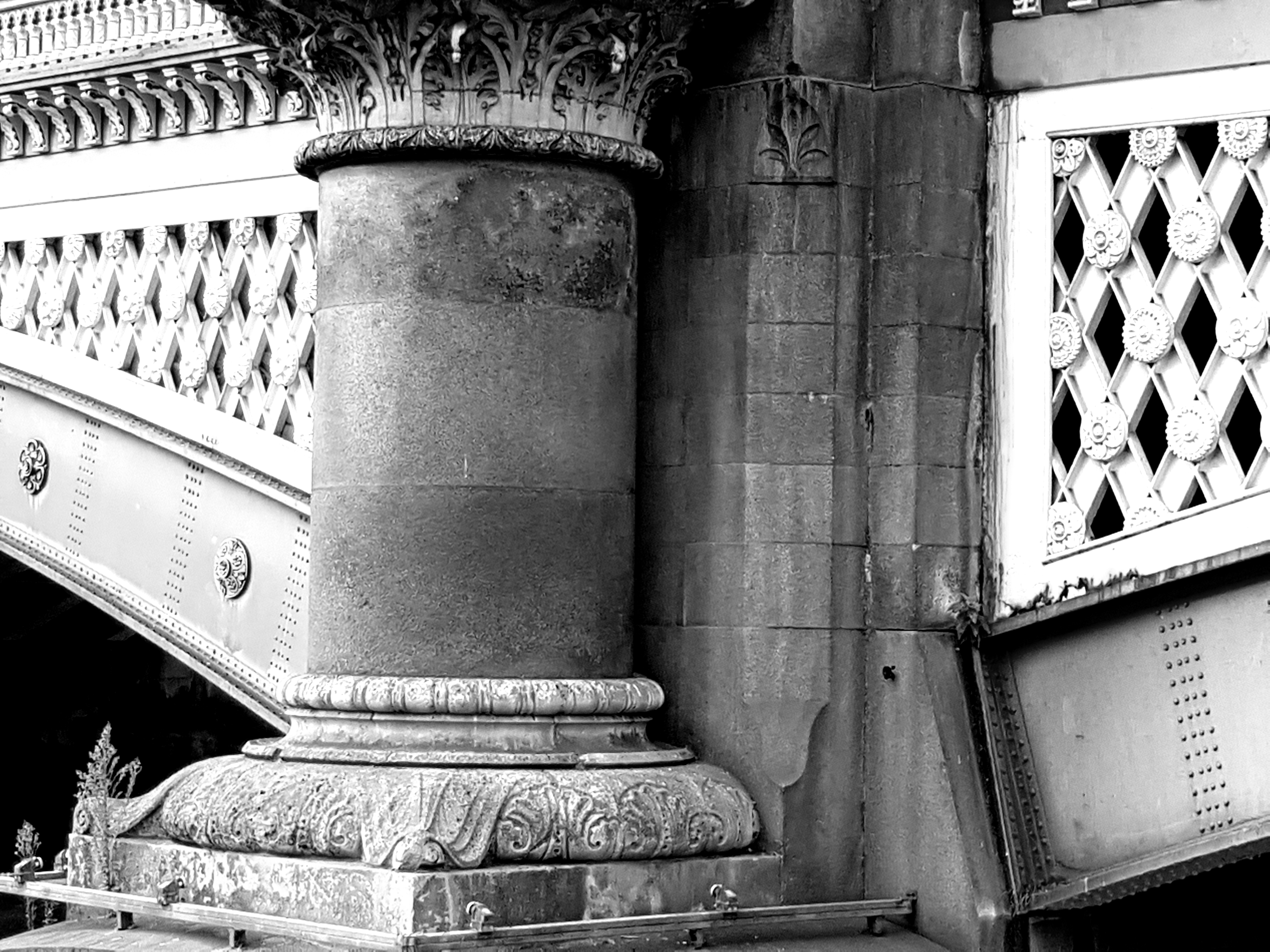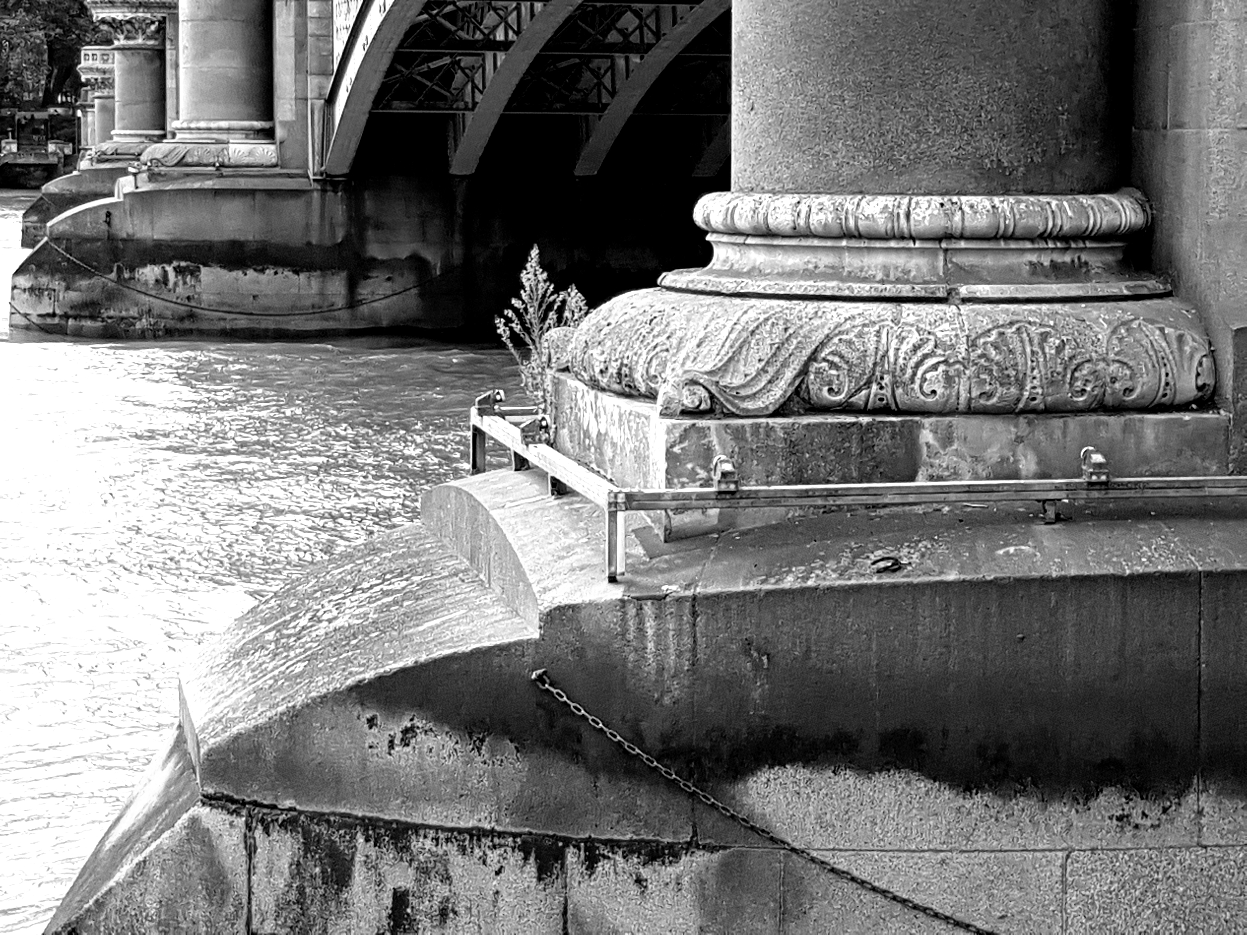 As the moment of our departure from Blackfriars approaches, I am paying more attention, once again, to our physical surroundings: this morning to the grand Victorian robustness of the underside of Blackfriars Bridge seen from the Embankment, designed by Joseph Cubitt and with metalwork by The Patent Shaft and Axletree Company in Wednesbury. It replaced the eighteenth-century toll bridge designed by Robert Mylne and opened in 1769:-