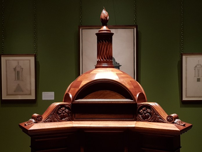 I went last night to the opening of Ferdinand SS’s exhibition on John Soane’s Ark of the Masonic Covenant which is being held in the new Foyle Gallery at the back of the Soane Museum (formerly known as the NEW PICTURE-ROOM). There was the reconstruction of the Ark itself, resplendent, made by Houghtons of York and with beautifully executed detailing in the three orders at each of the corners and in the scrollwork on top:-