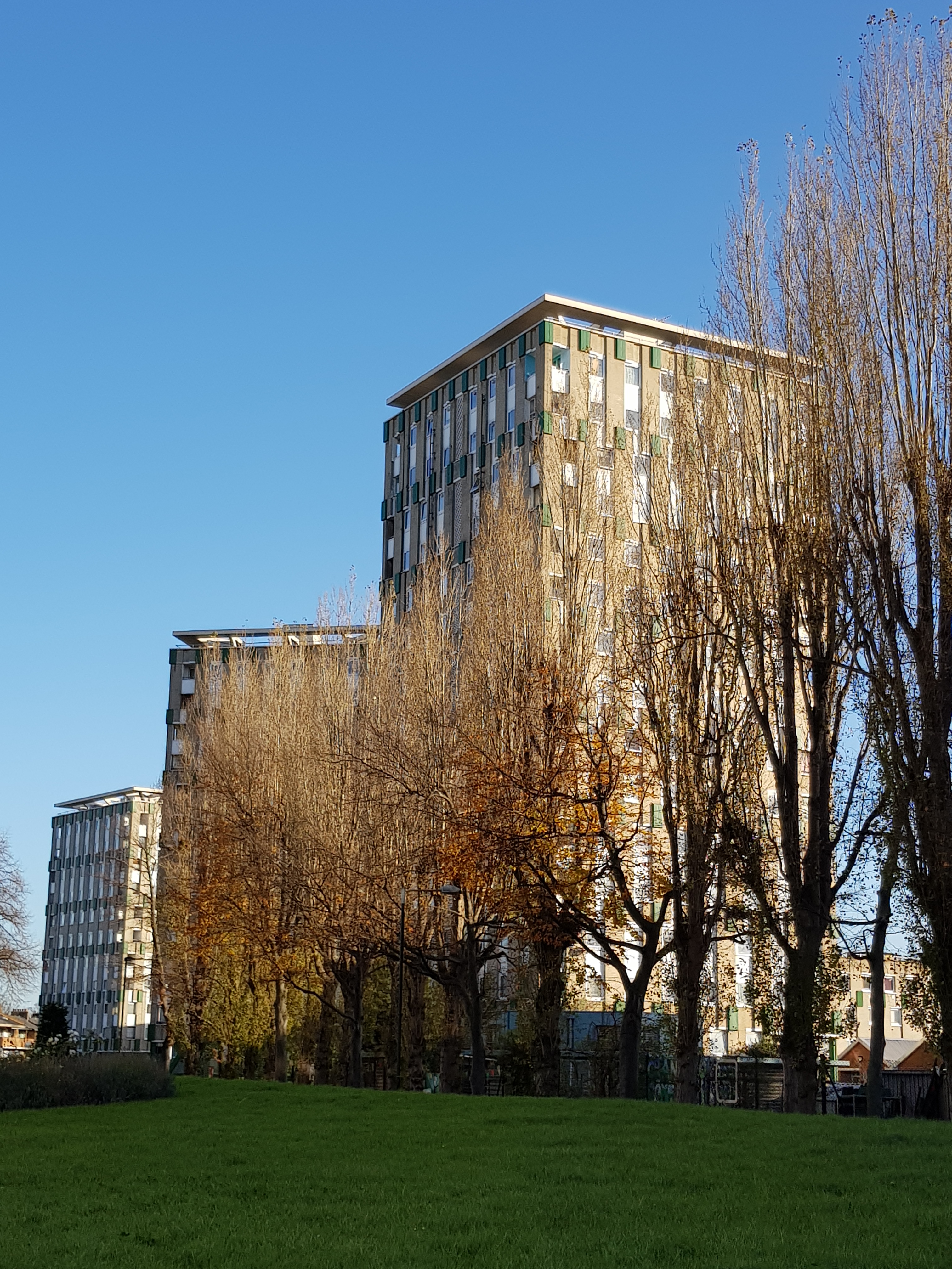 The Cranbrook Estate, which was designed by Francis Skinner, Douglas Bailey and their mentor, Berthold Lubetkin, was looking very fine this morning, part of the postwar slum clearance which Nairn so deplored in Bethnal Green, involving the loss of a big area of workshops and terraced houses:-