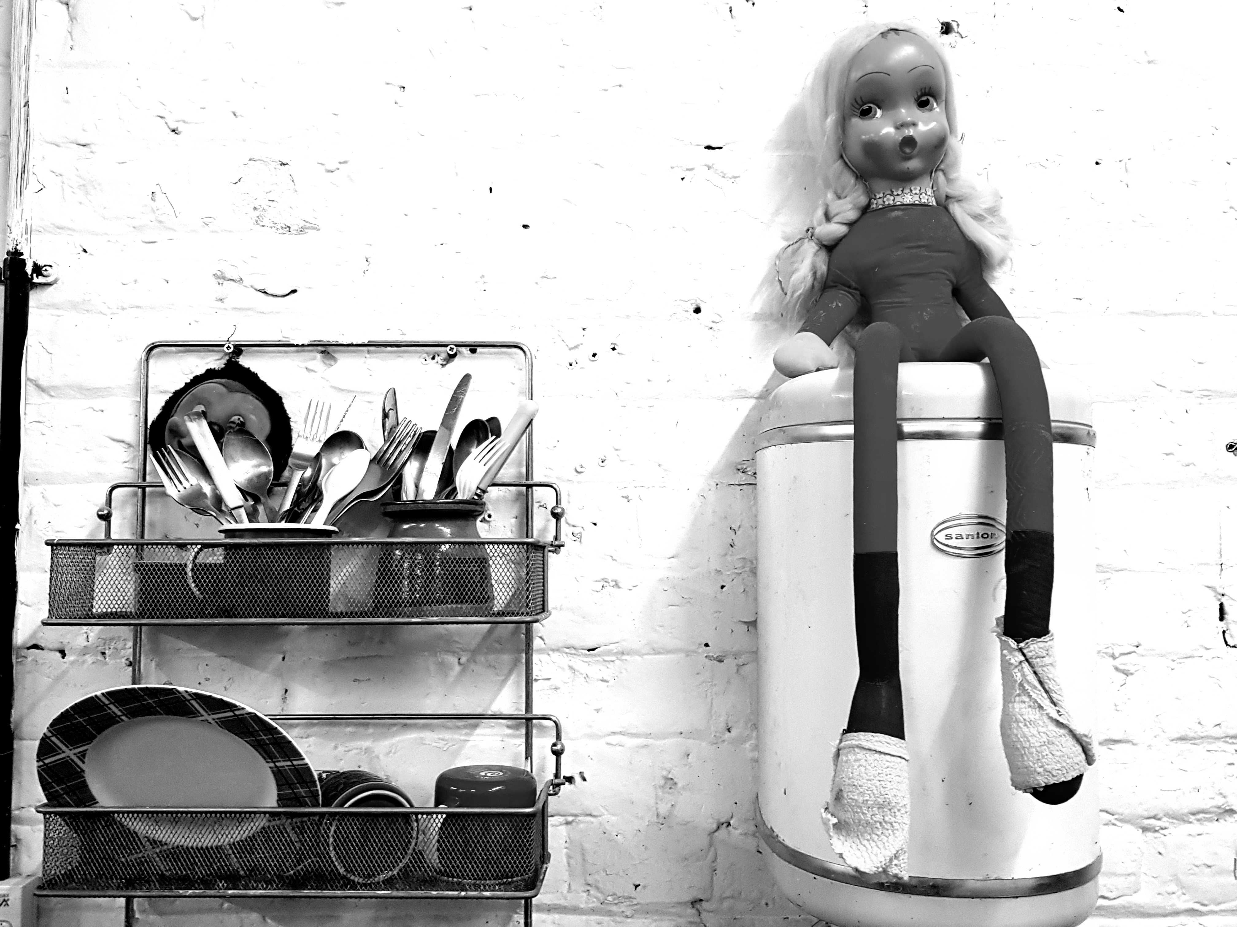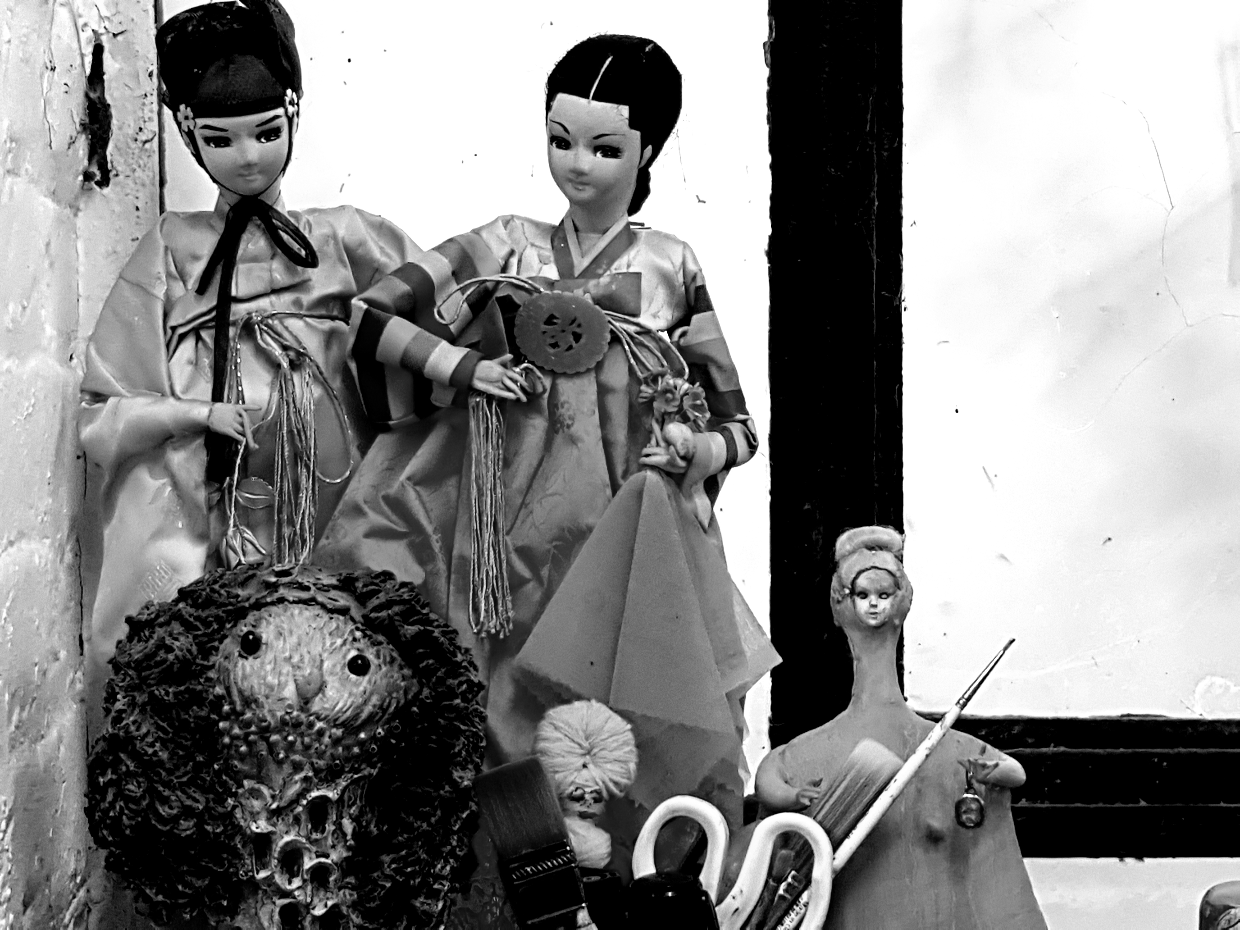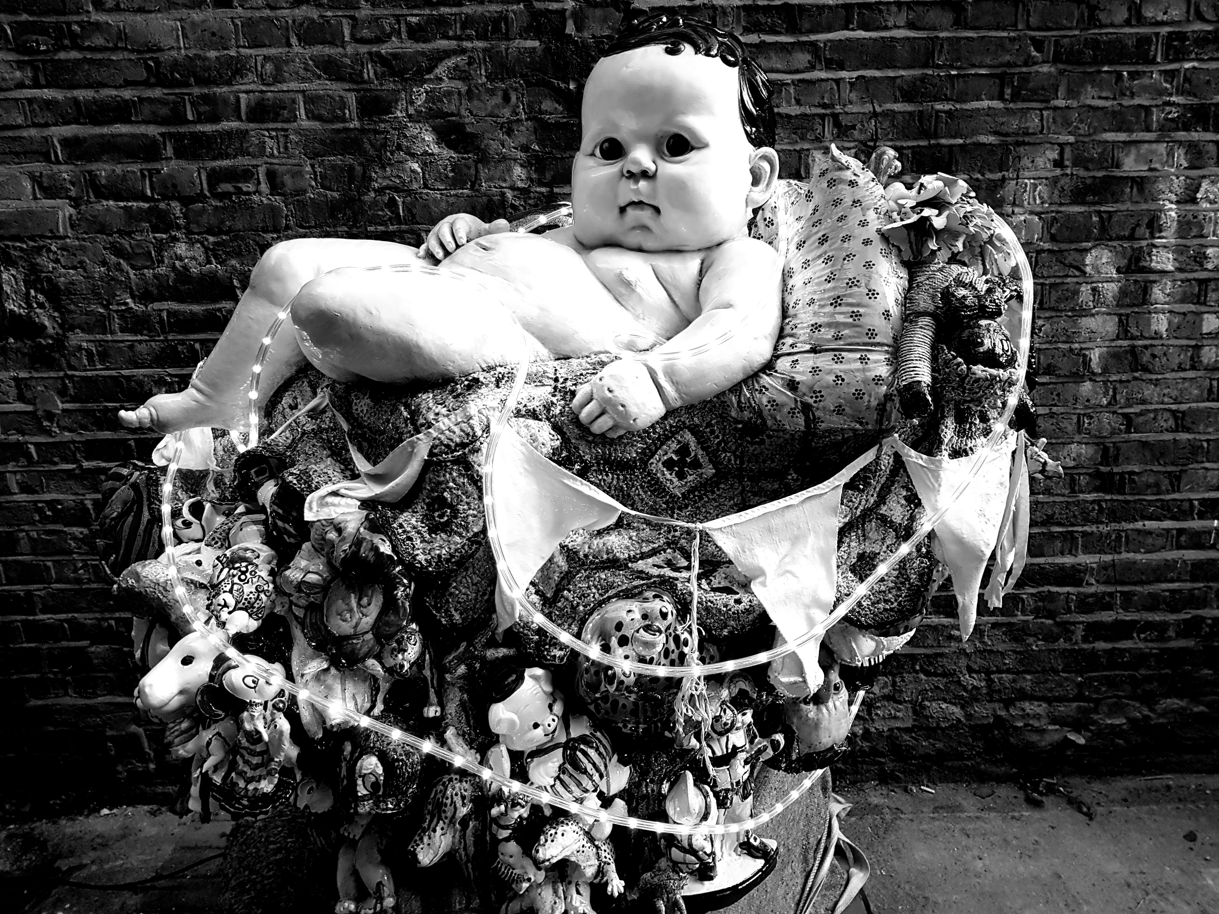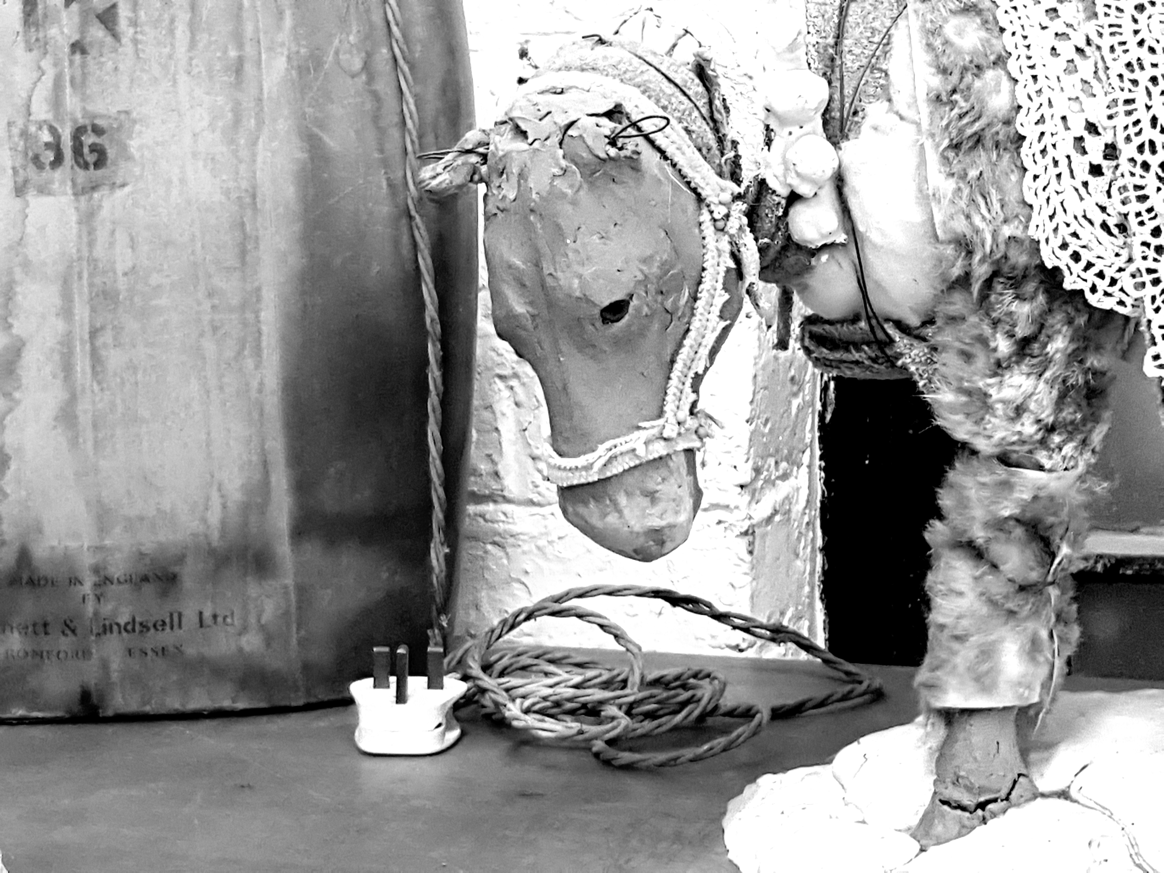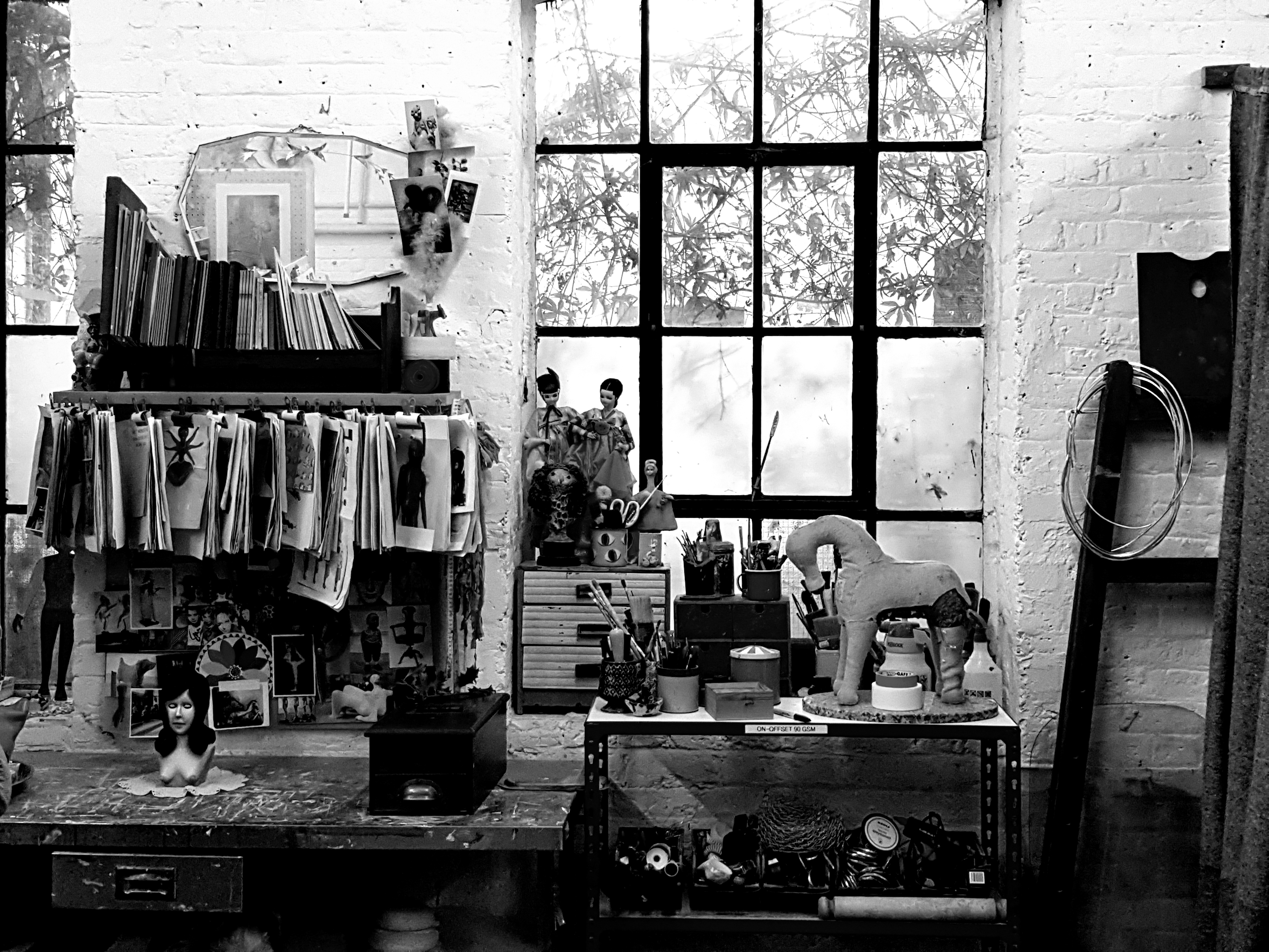 This afternoon, I went to Cathie Pilkington’s Christmas salon in her studio which is in an old brush factory owned by the Crown Estate and leased to ACME as artists’ studios since the mid-1970s, one of the early agents of regeneration, alongside the squats in Bishop’s Way. I have seen much of her recent work in her exhibitions, but liked the friendly disorder of her studio:-
