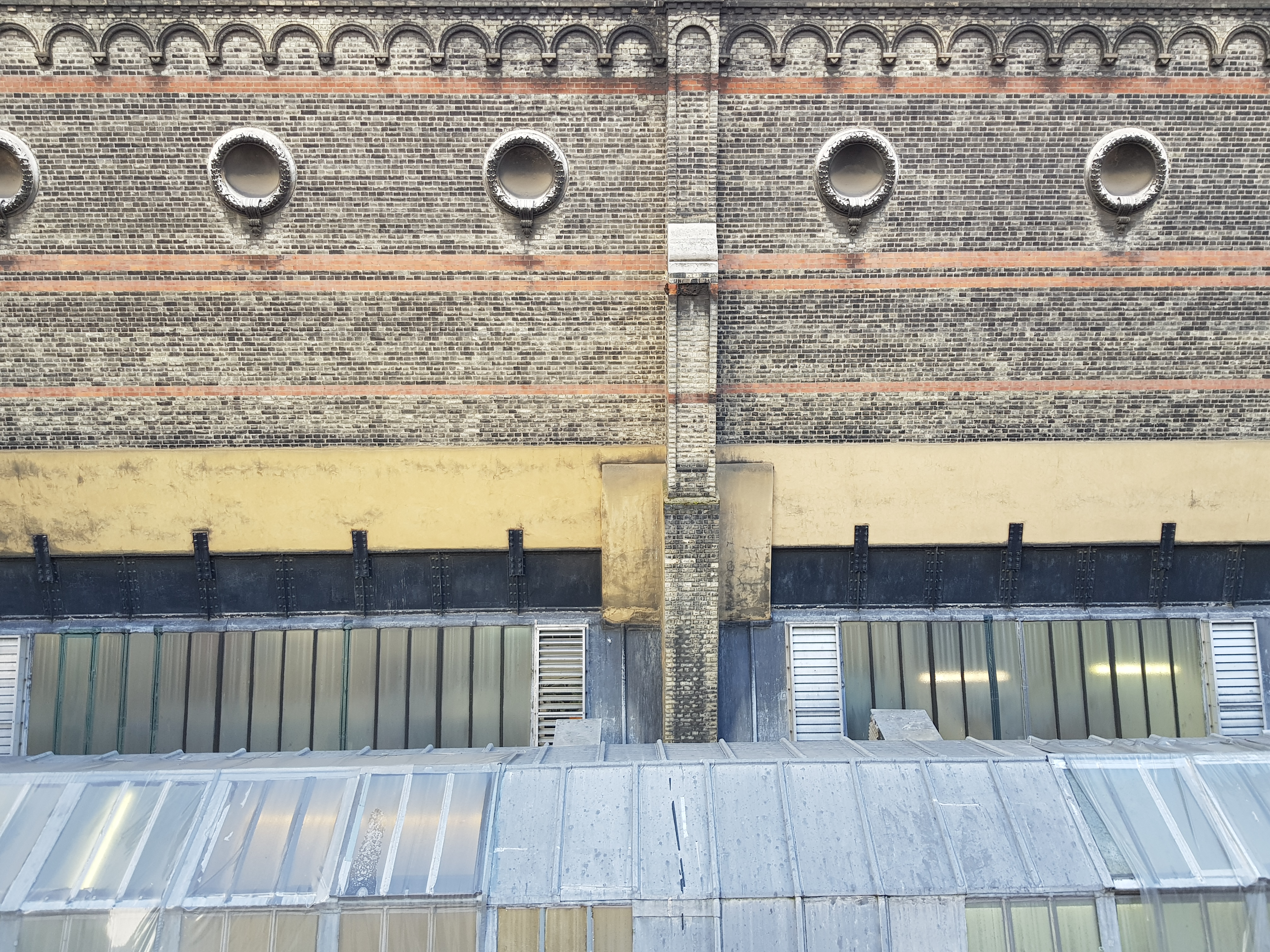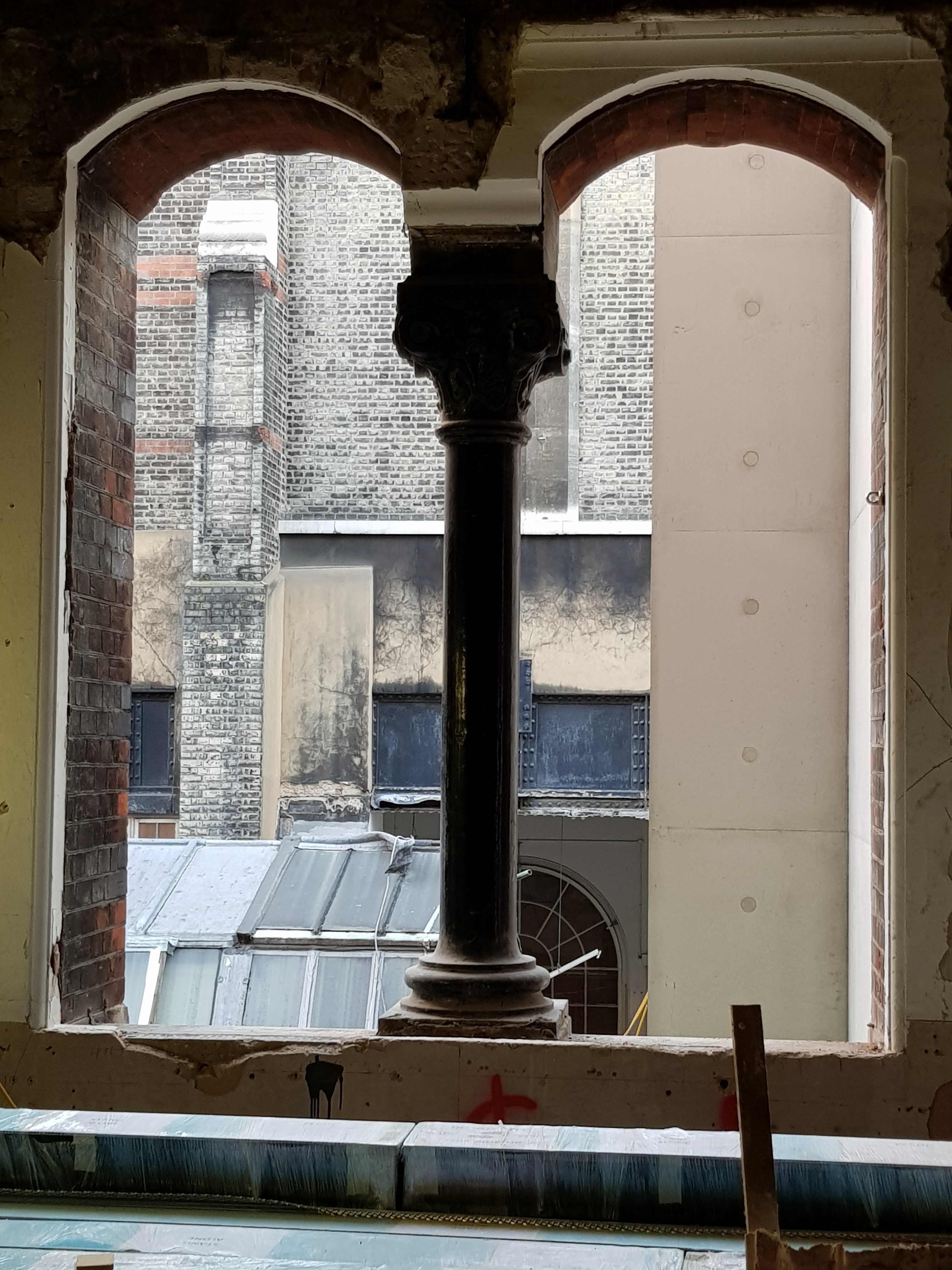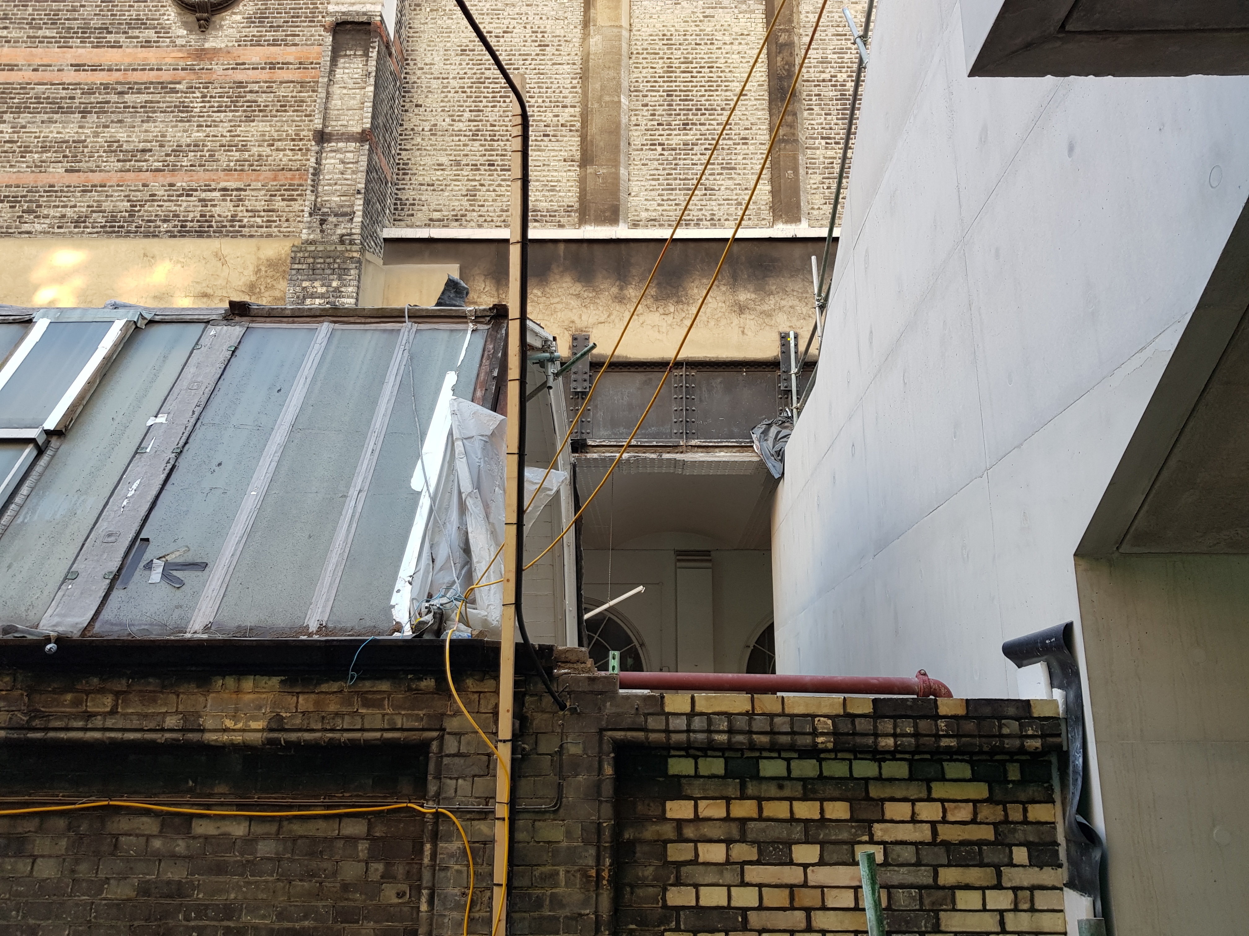 I walked round Burlington Gardens again this morning, admiring the cool monumentality of the connecting bridge, the views across the back yard and, best of all, the Gabrielle Jungels-Winkler Galleries where the scaffolding has now been cleared, revealing the ironwork of the vaulted roof:-