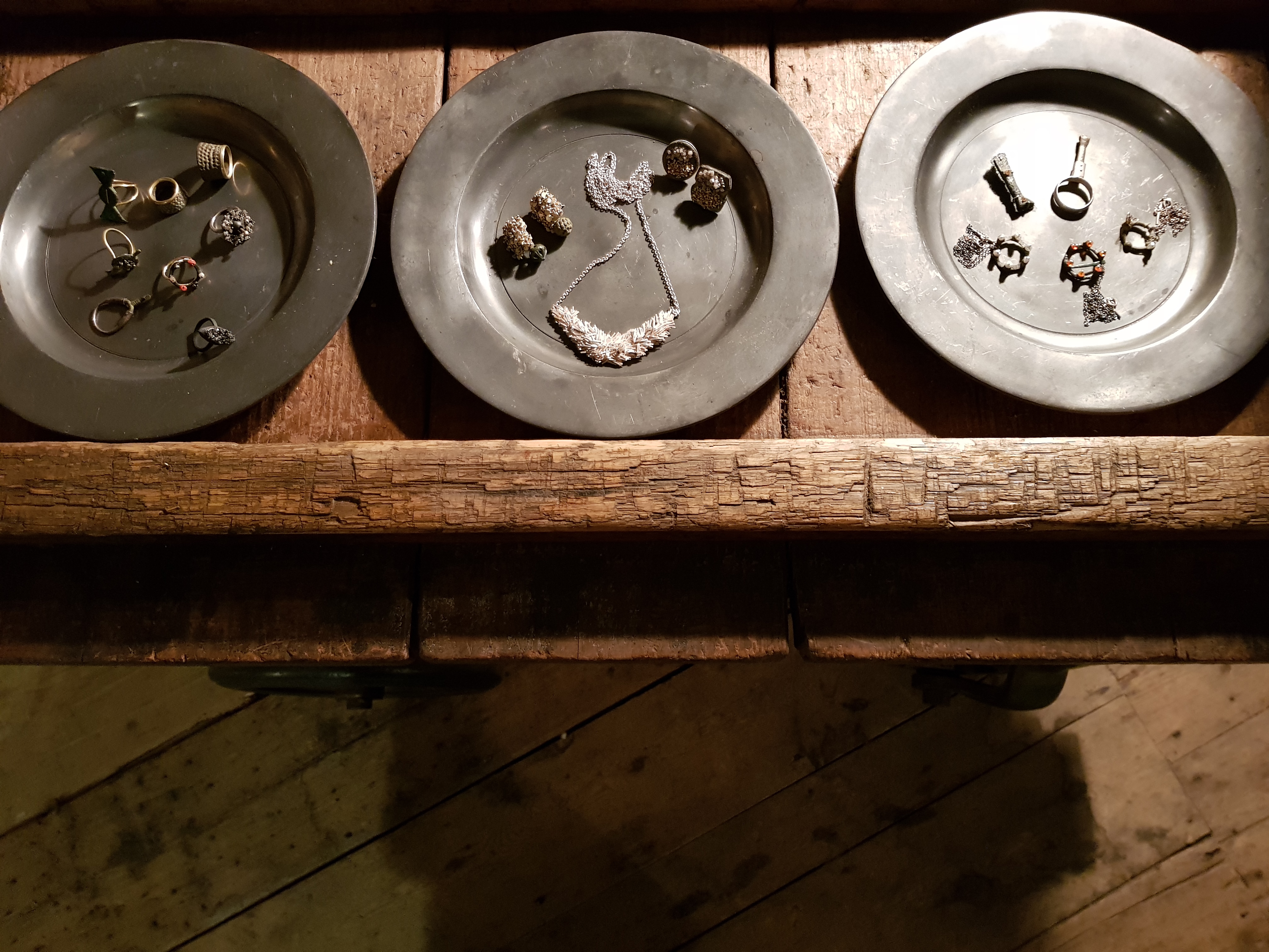 The book consists of two separate series of photographs by Verdi Yahooda: the first is of metal detecting finds, photographed on the worn floor boards of our house; the second of pieces of Romilly’s jewellery which have been made out of the finds. In between is an essay by Bryan Appleyard, designed by Nicola in Garamond.