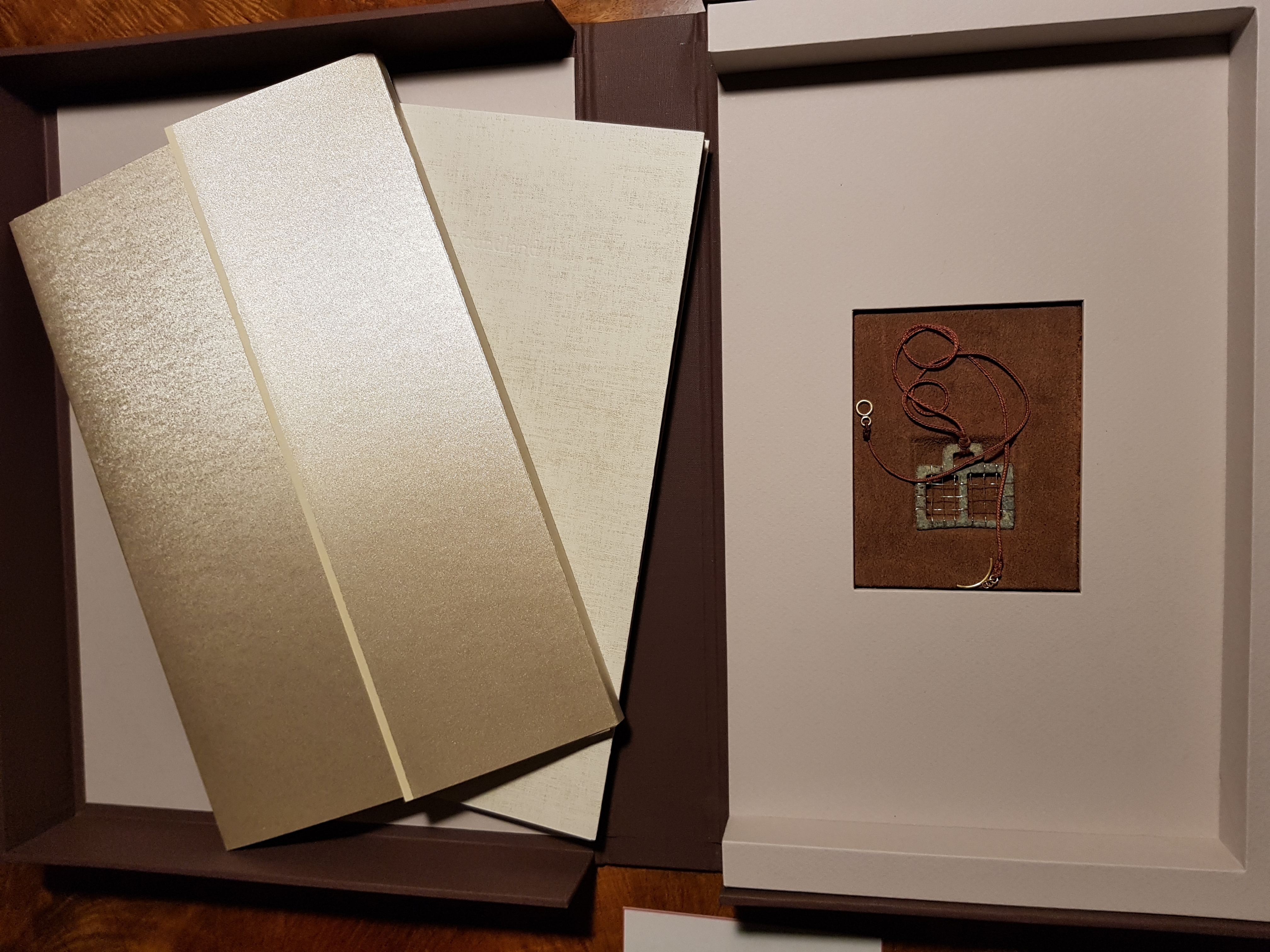 So, the book has been launched. A group of friends, bibliophiles and performance artists came to hear William Chubb give a theatrical rendition of Bryan Appleyard’s text about the art of memory and admire the extreme and fastidious precision of the book itself – the quality of the sewing, typography, the density of the blacks in the photographic reproduction – and the display of jewellery next door:-