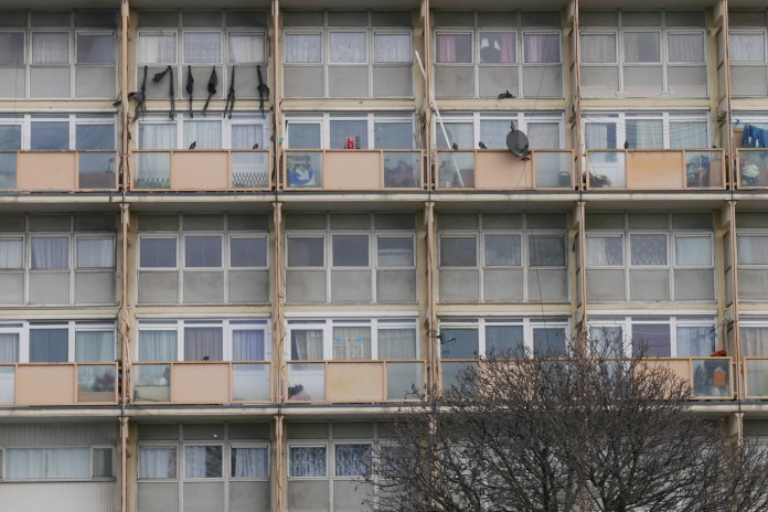 A block of flats protesting in Norman Street:-
