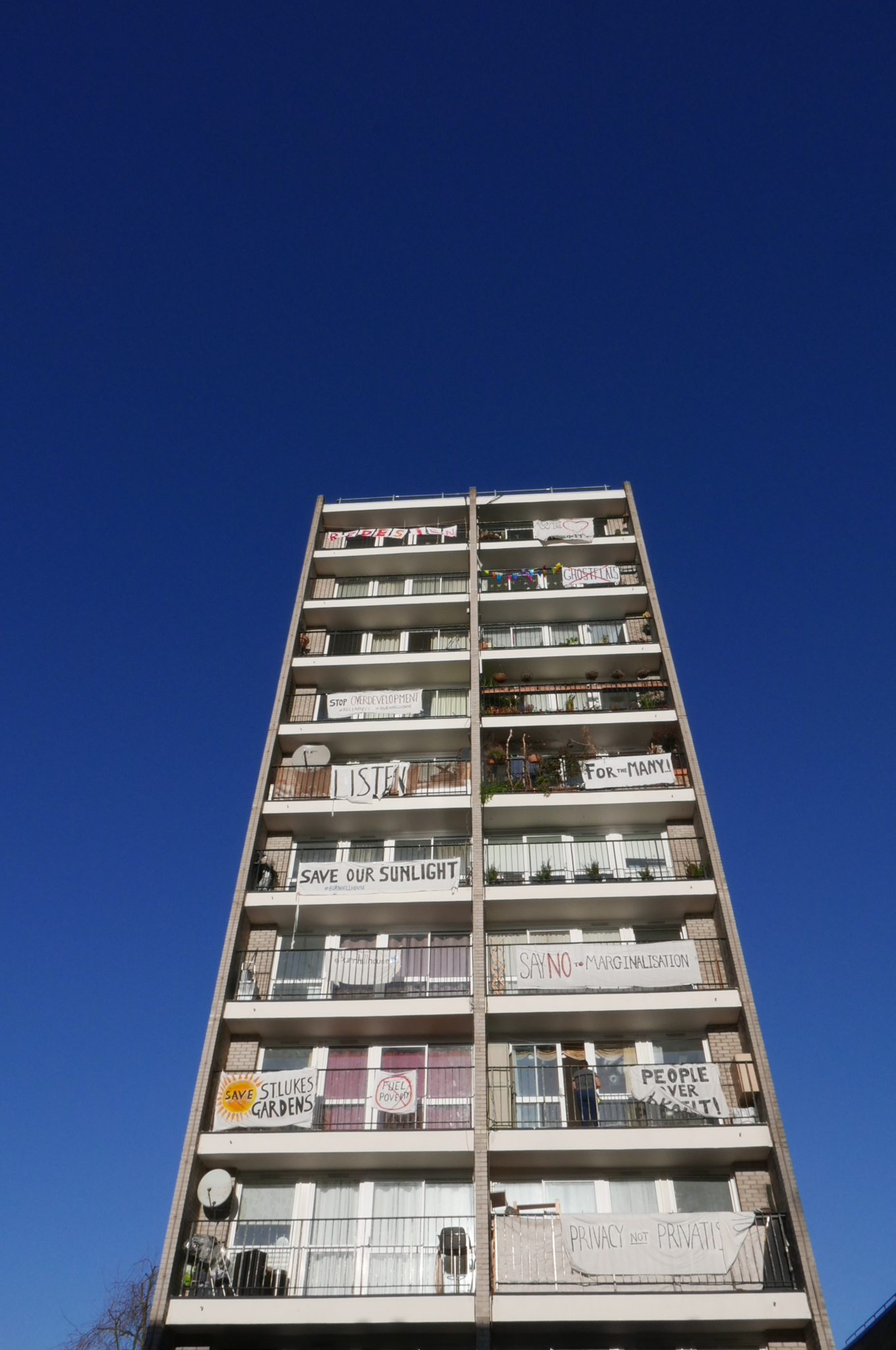 A block of flats protesting in Norman Street:-