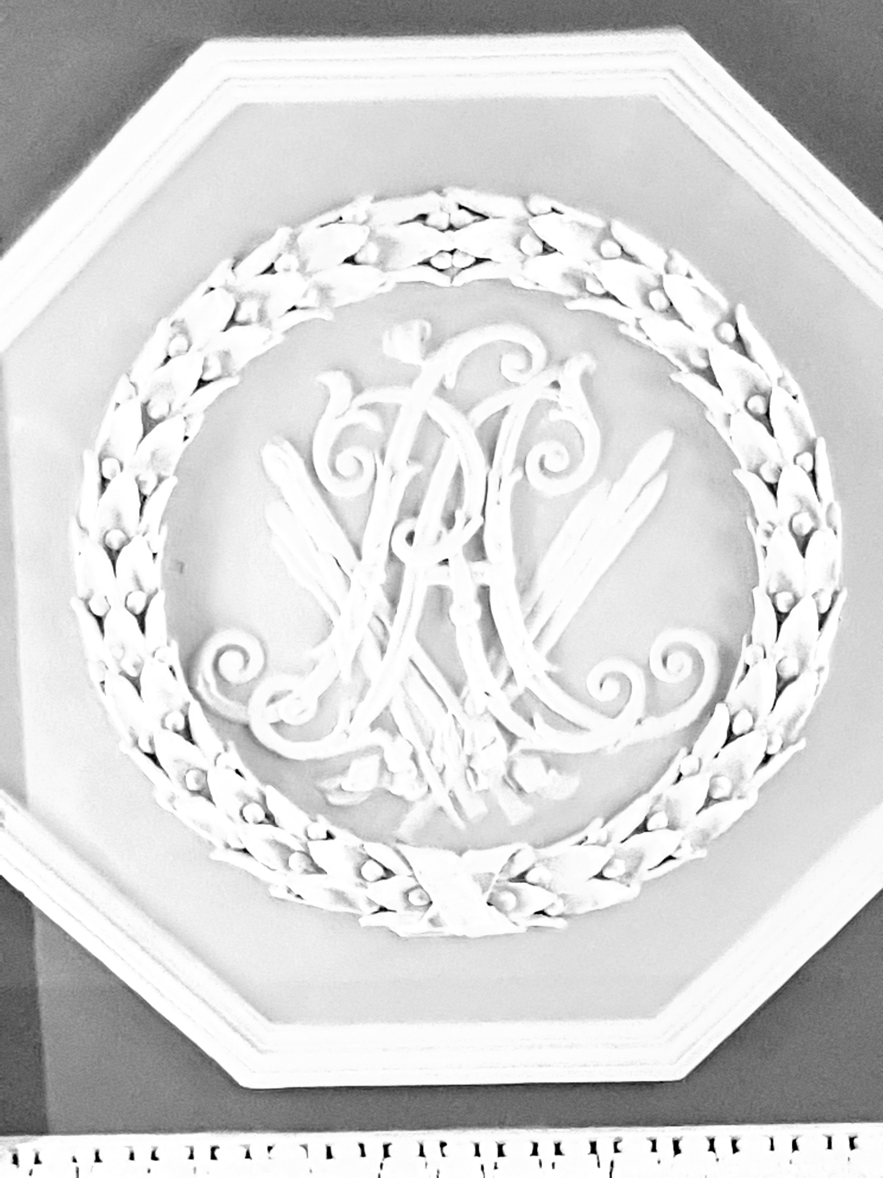 To the left was a room for casts with the original insignia of the RA in the plasterwork decoration:-