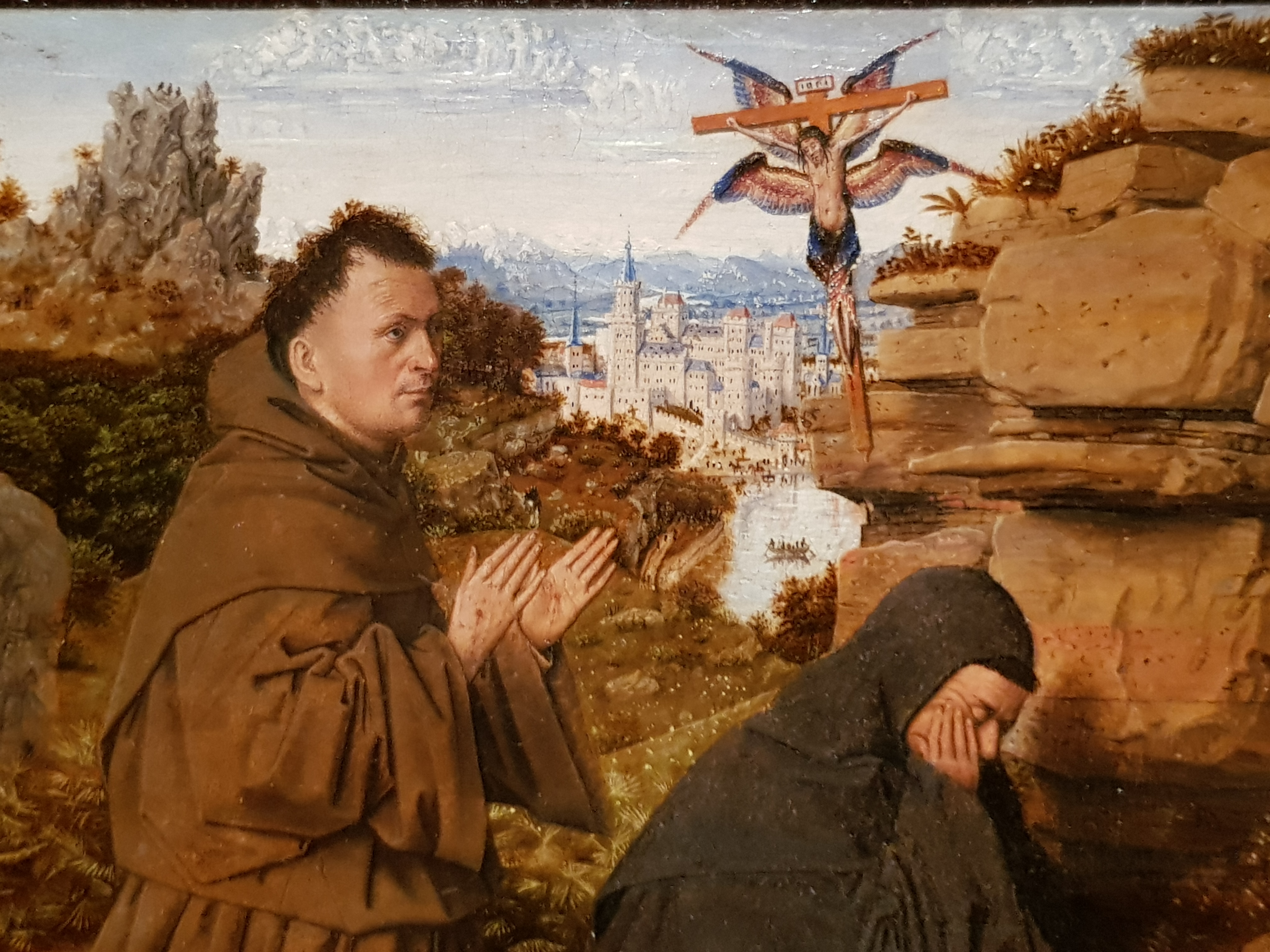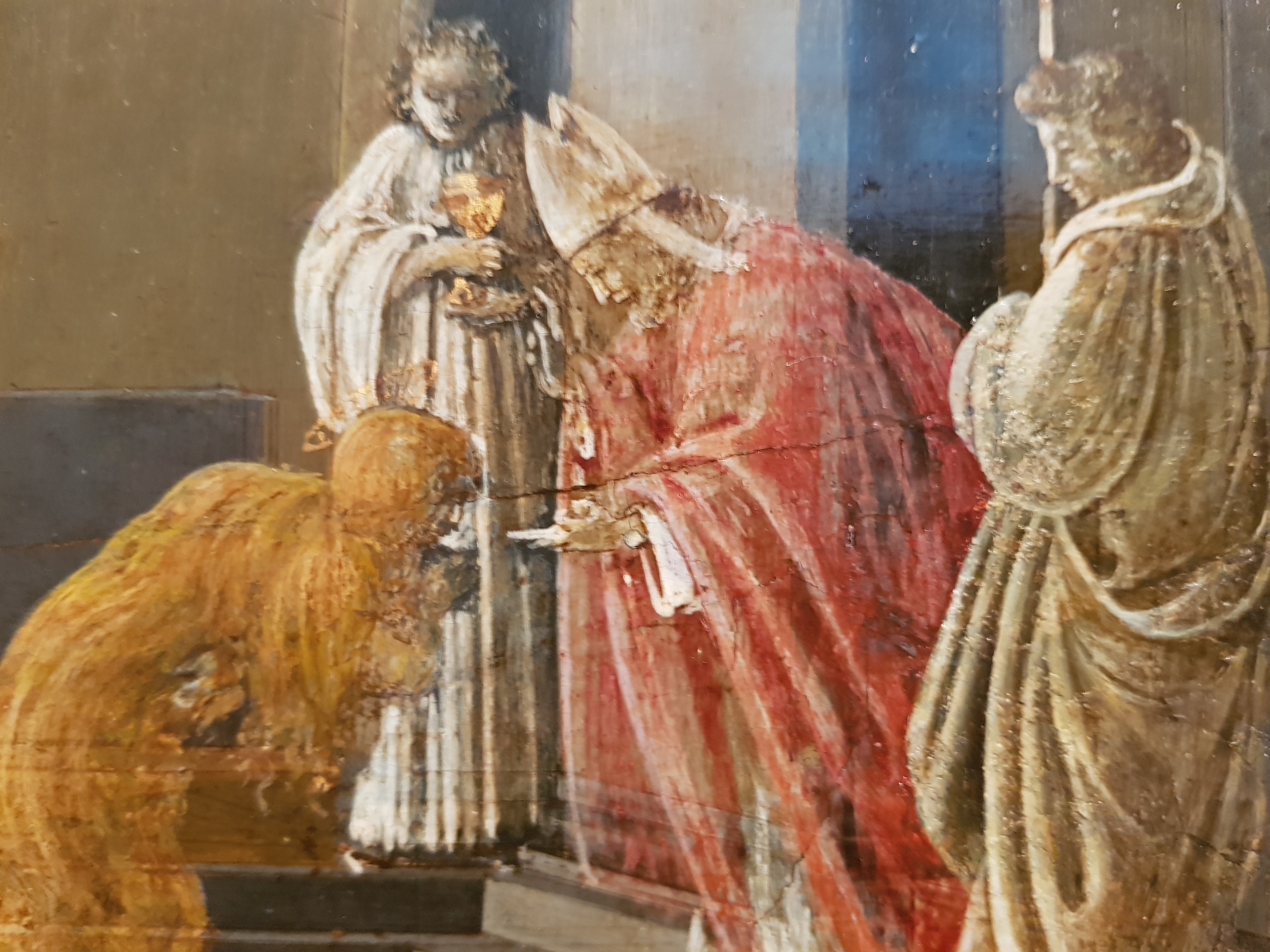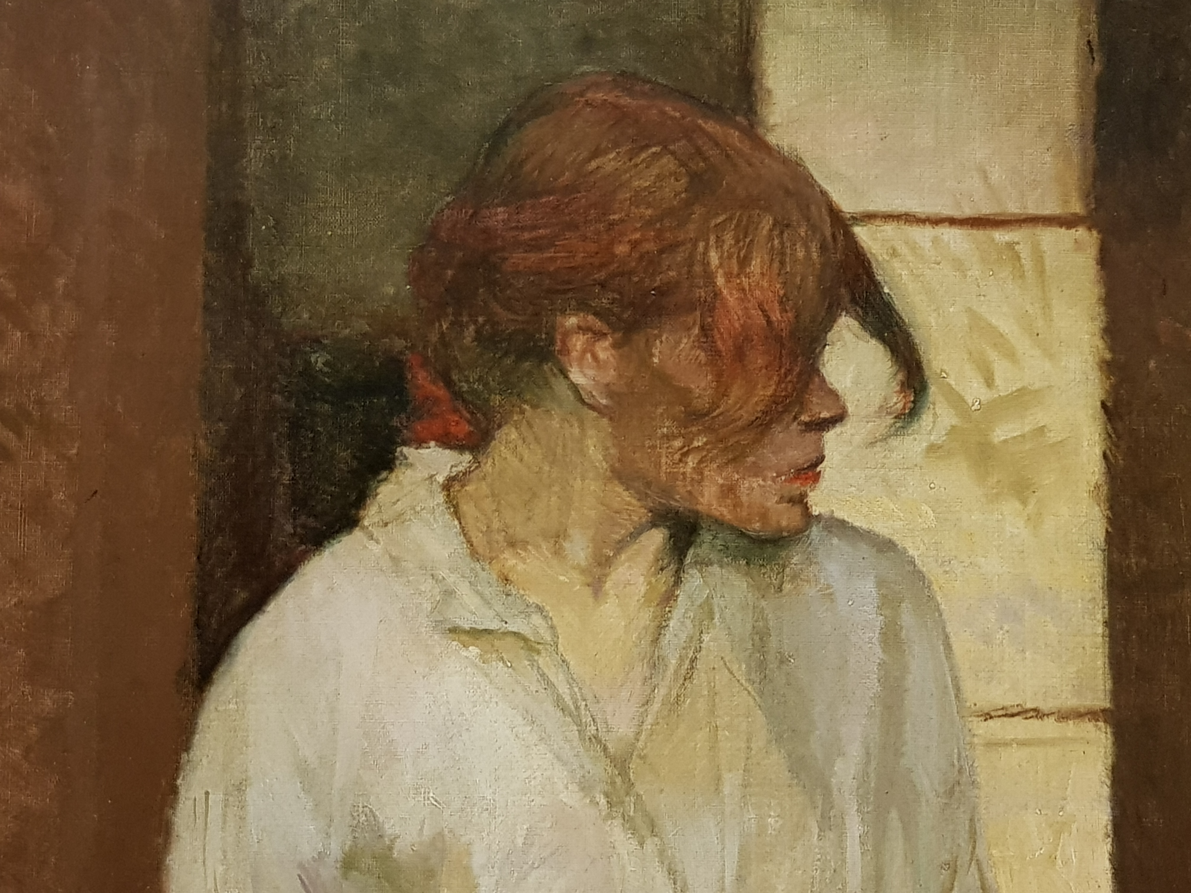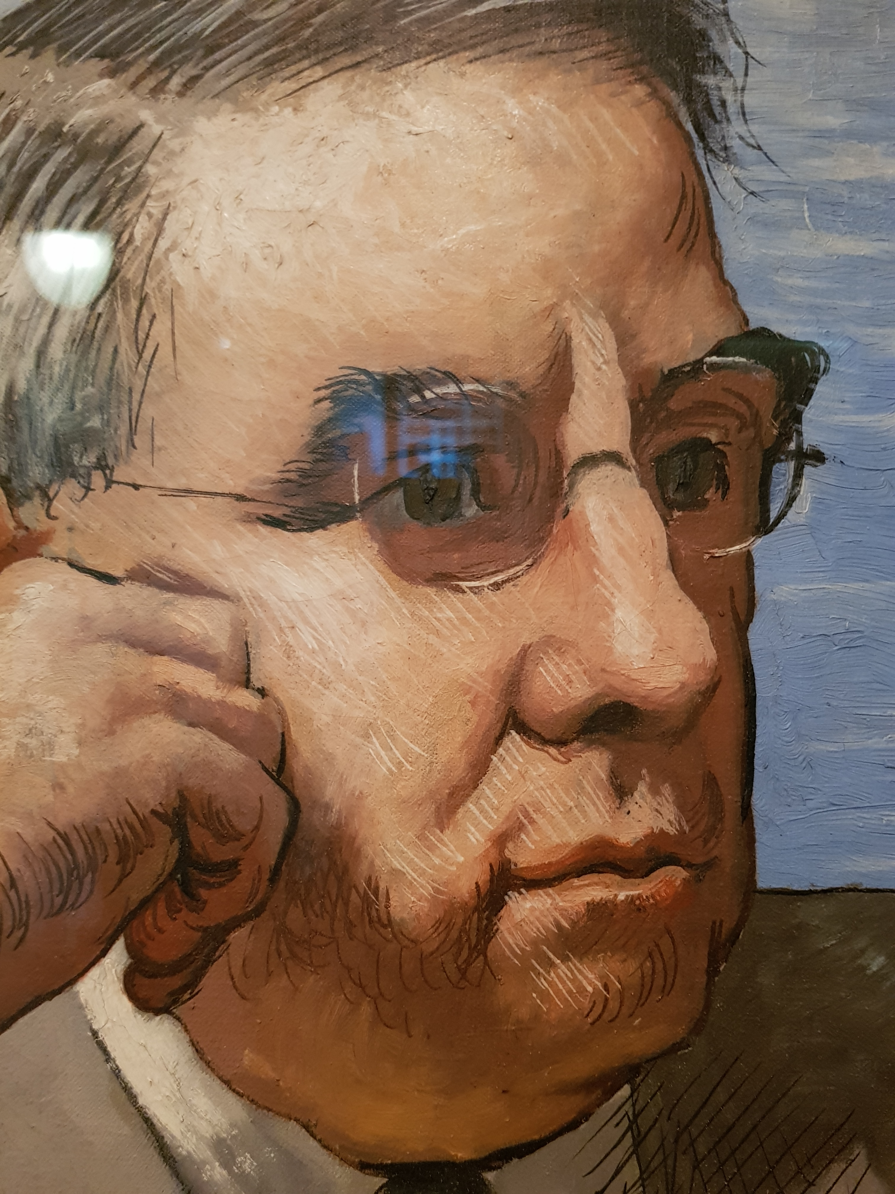 Inside, I admired the beautiful, early Arts-and-Crafts lamps and the richly carved staircase hall:-