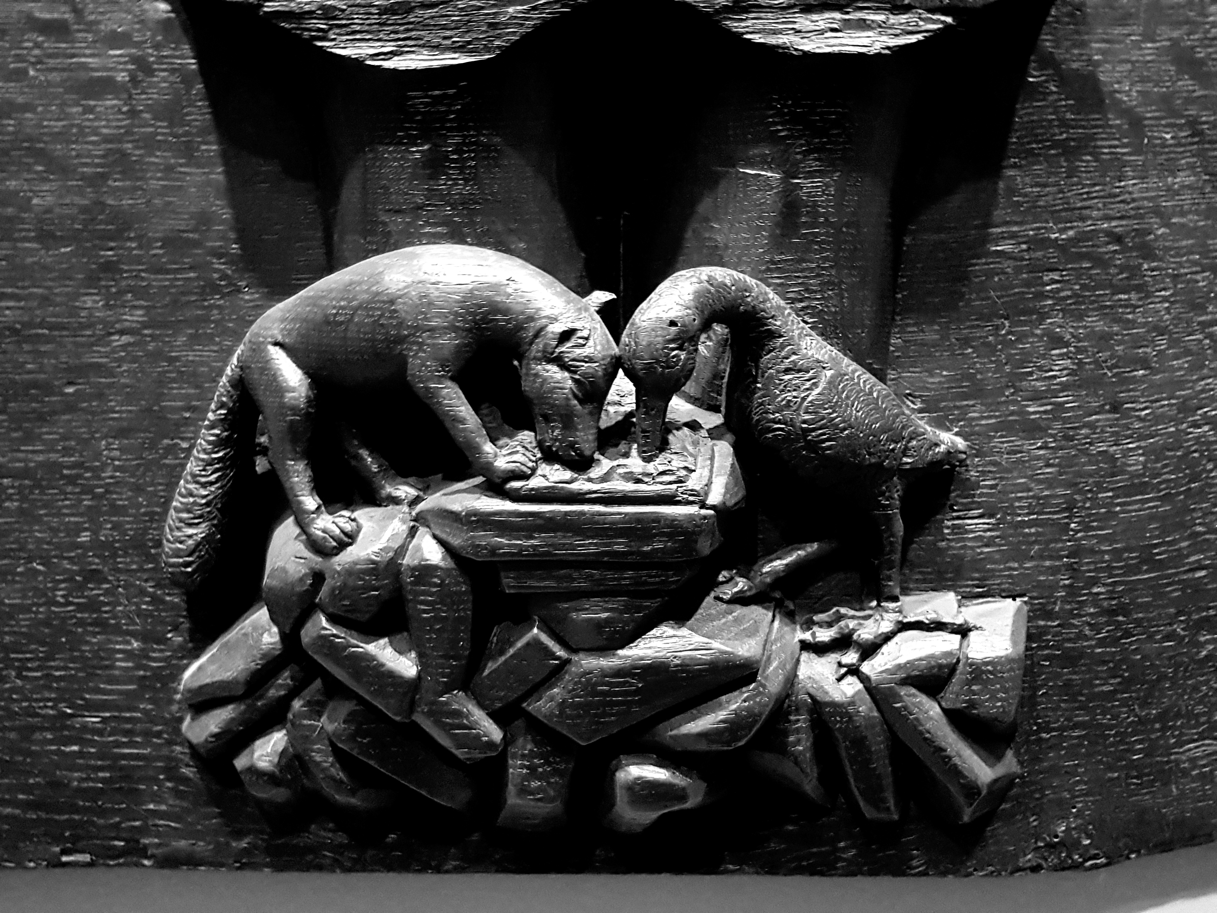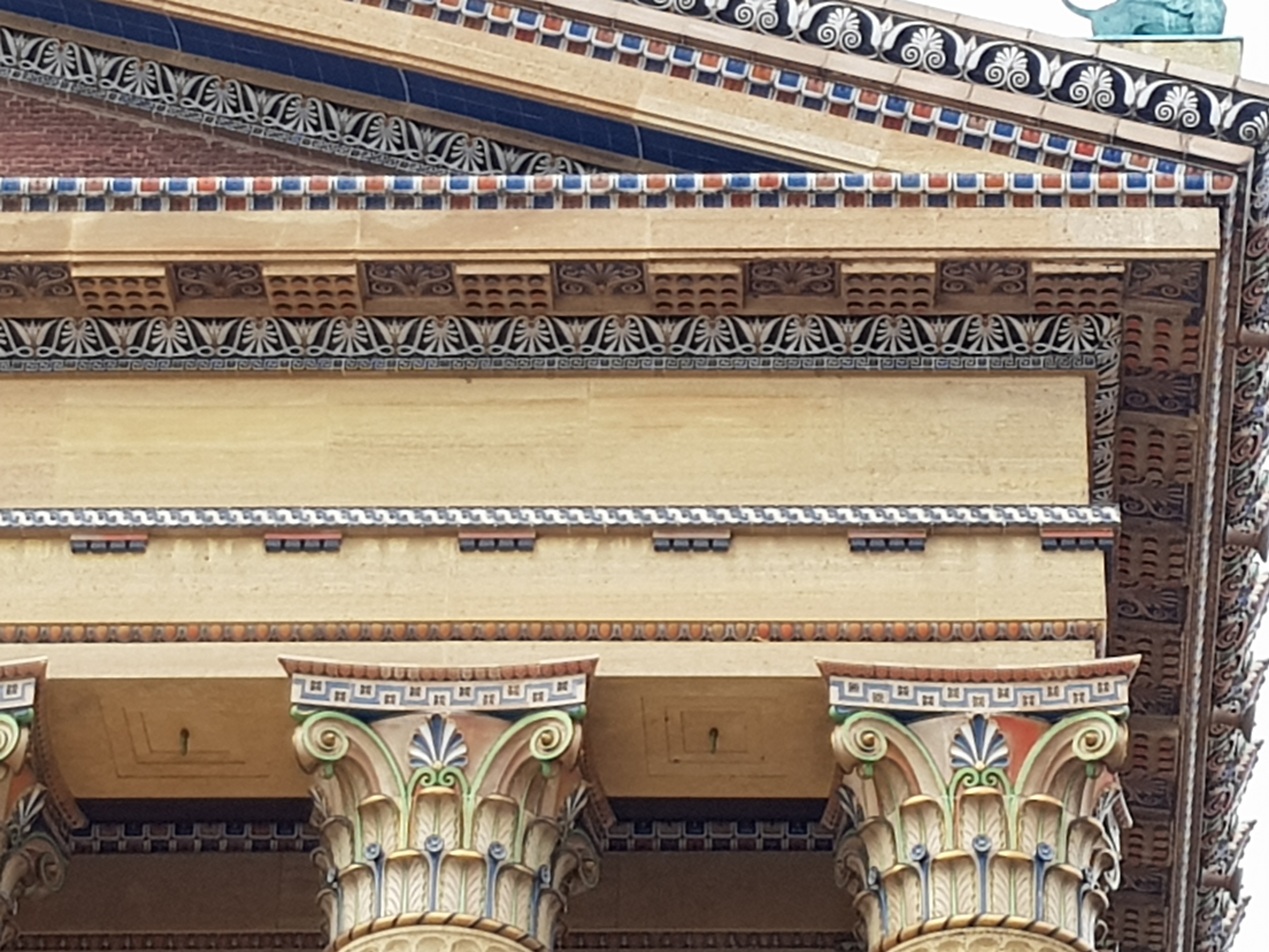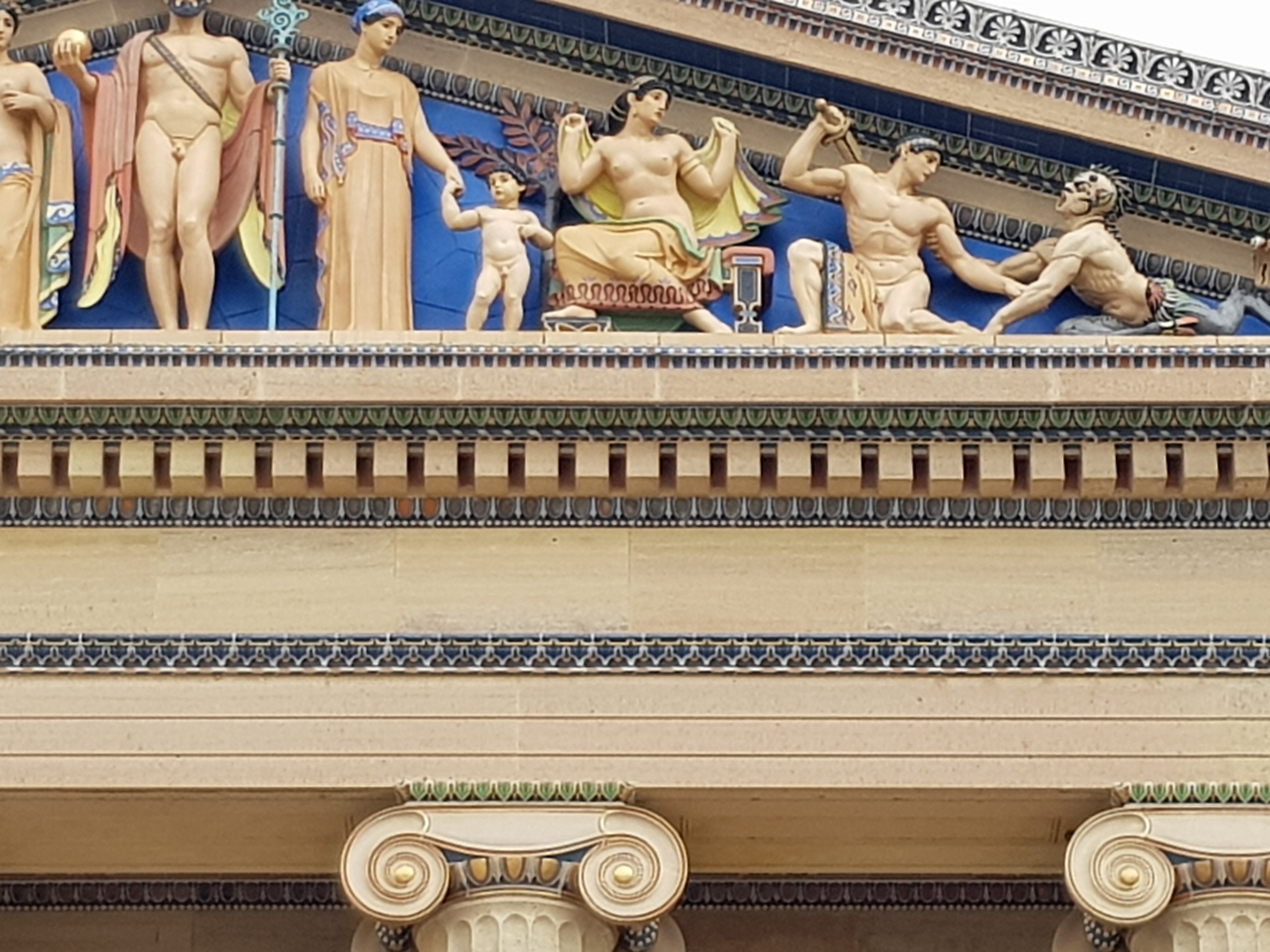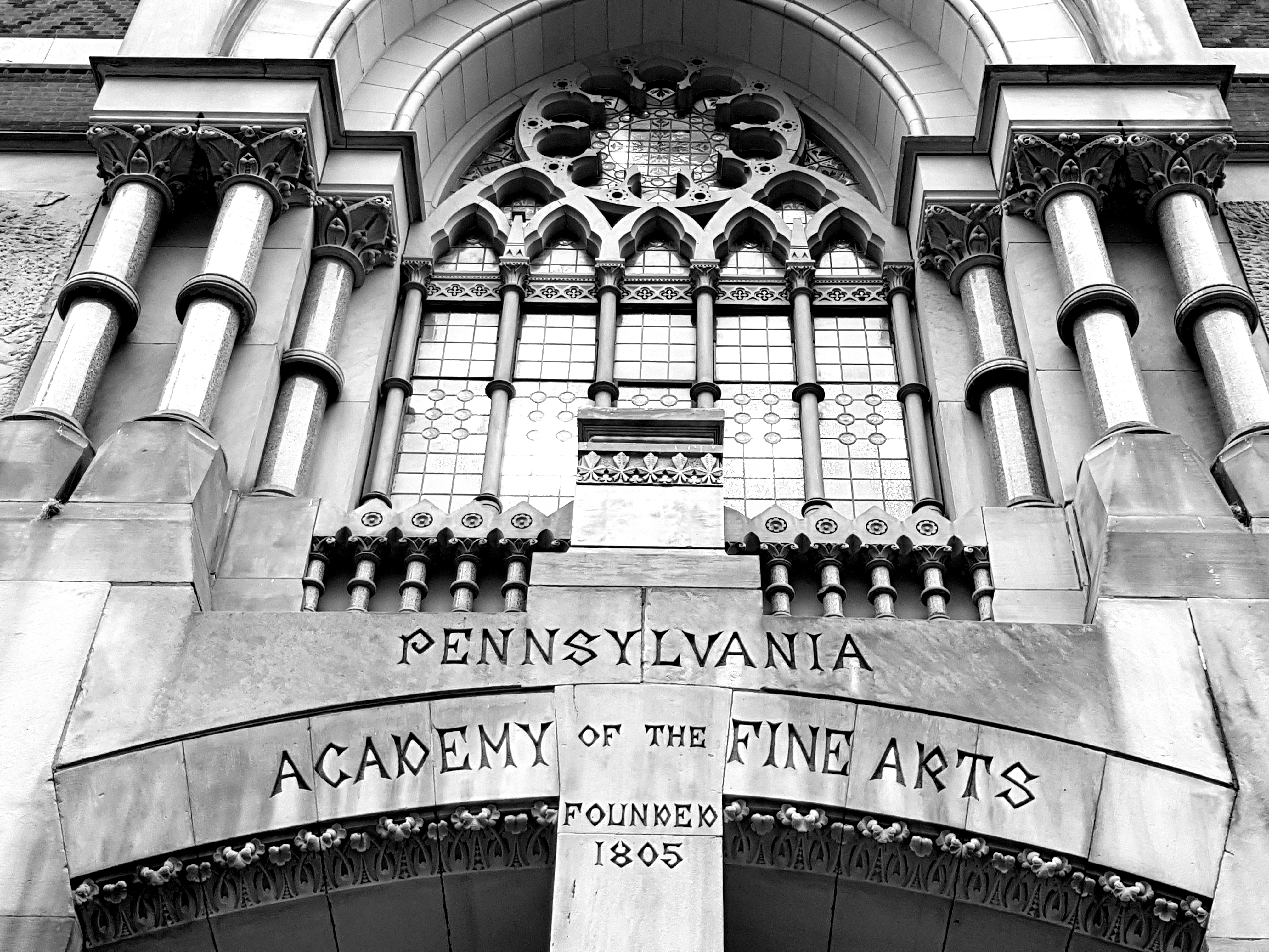 The evening’s discussion about the nature of academies was held in the Pennsylvania Academy of Fine Arts, Frank Furness’s great Ruskinian gothic building, which opened in 1876, the year of the Centennial, complete with carved panels showing the benefits of an art school education:-