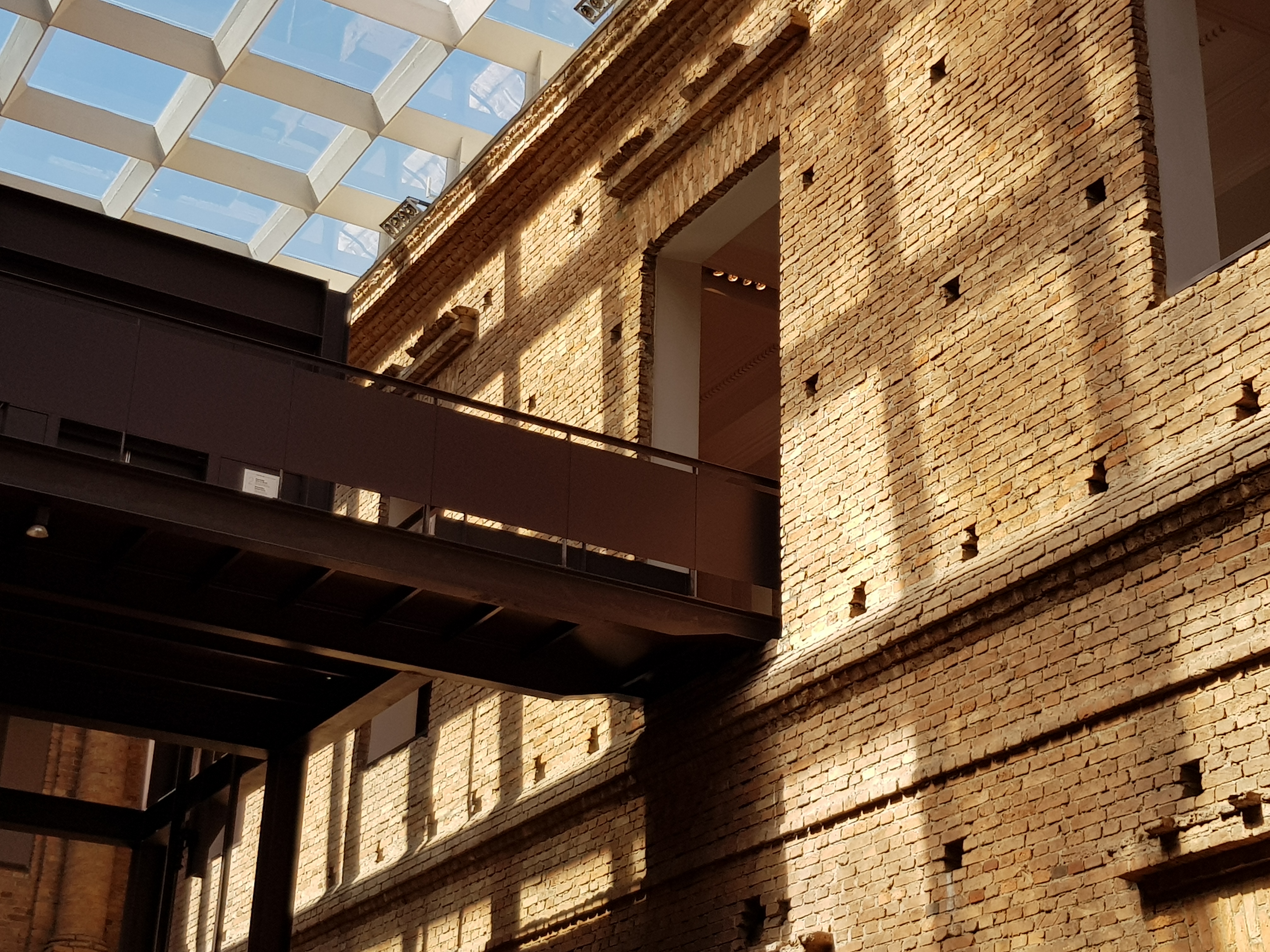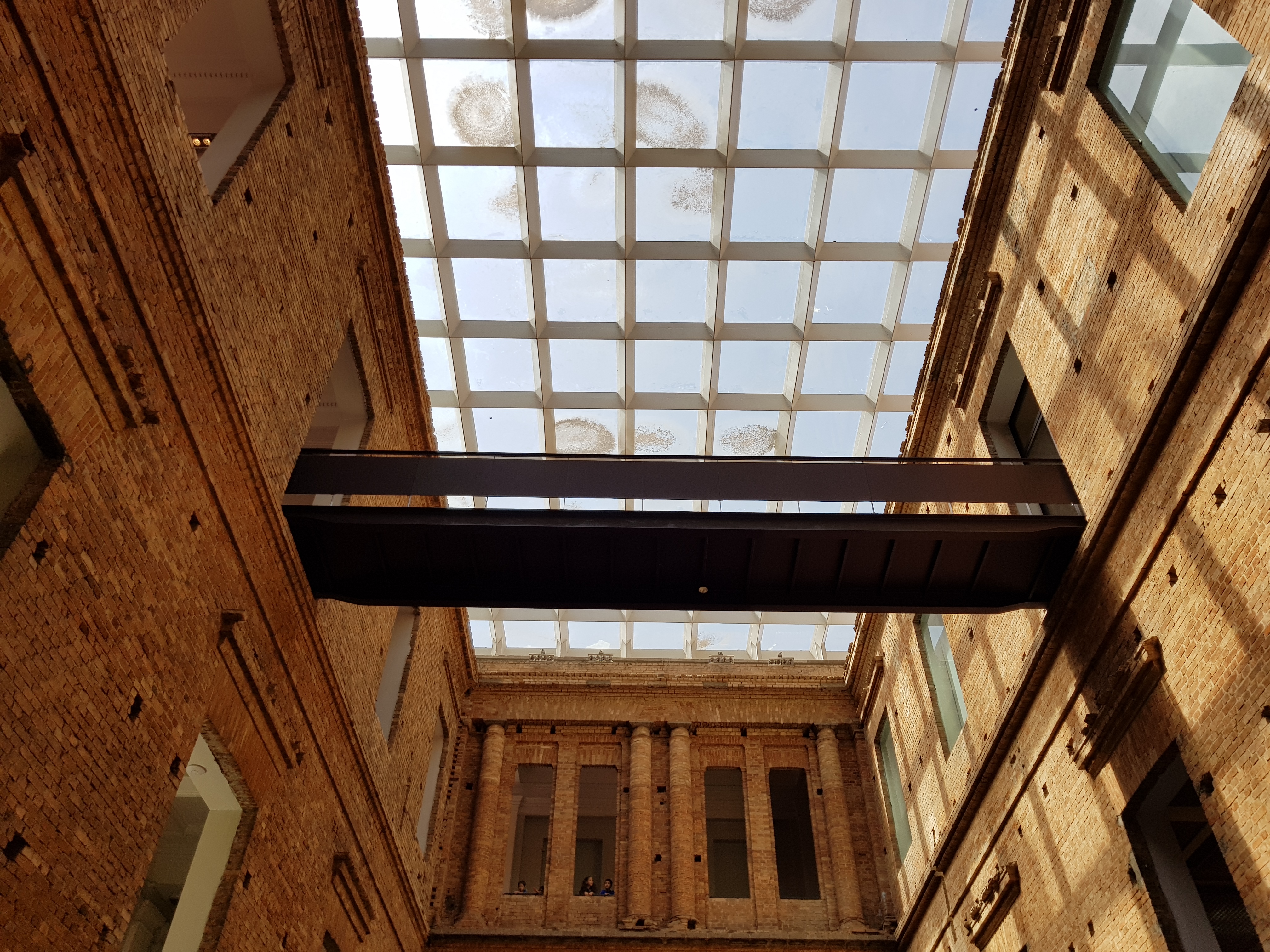 We started the day at the Pinacoteca, which was originally attached to the art school, founded in 1905, and is located in an older building, designed as the headquarters of the Lyceum of the Arts and Crafts.   In the late 1990s, it was radically renovated by Paulo Mendes da Rocha in a style which preserved the fabric of the original building, but roughly – an idea which goes back to Carlo Scarpa and has been used to particularly good effect in the Neues Museum by David Chipperfield and Julian Harrap:-